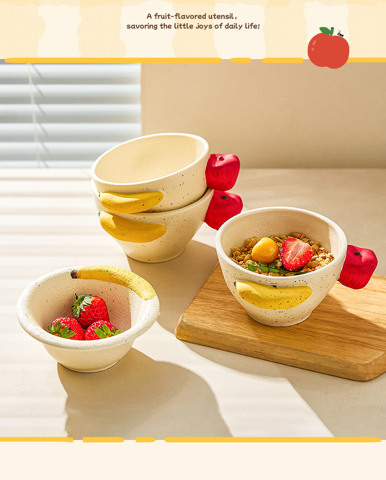 摩登主妇釉下彩盘子漂亮餐具香蕉酸奶碗具家用陶瓷杯浮雕水果餐盘 商品图3