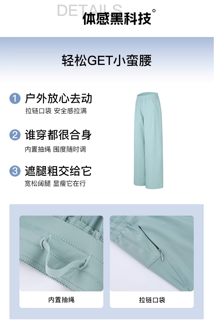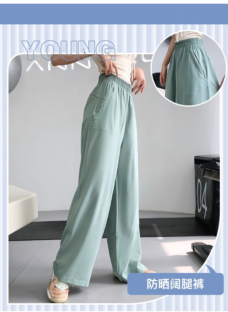 【3~5天发货】跃牌【美度空间】系列 SZ春夏新款防晒宽松长裤女口袋拉链收腰直筒阔腿裤凉感速干运动裤ADCK1602