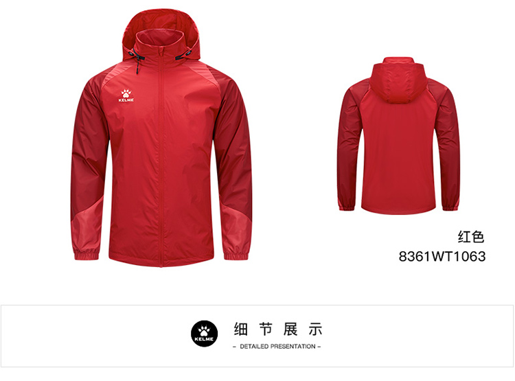 kelme卡尔美 男童女童风雨衣中大童足球训练外套防风运动风衣