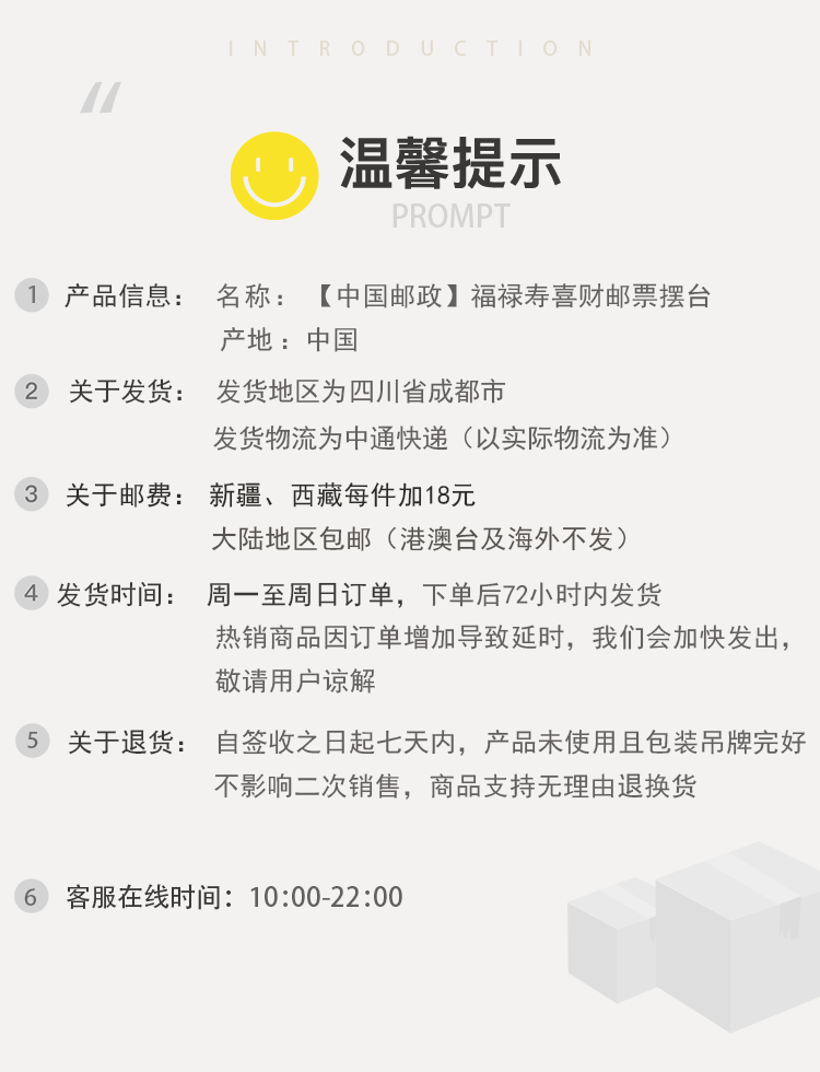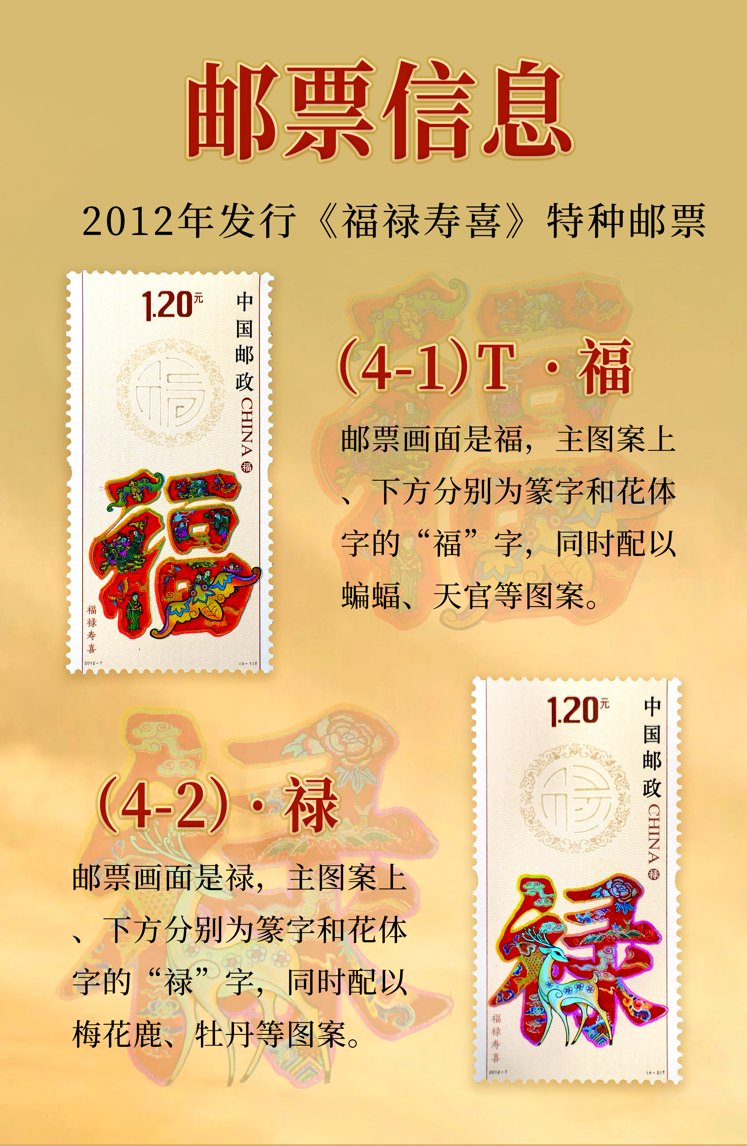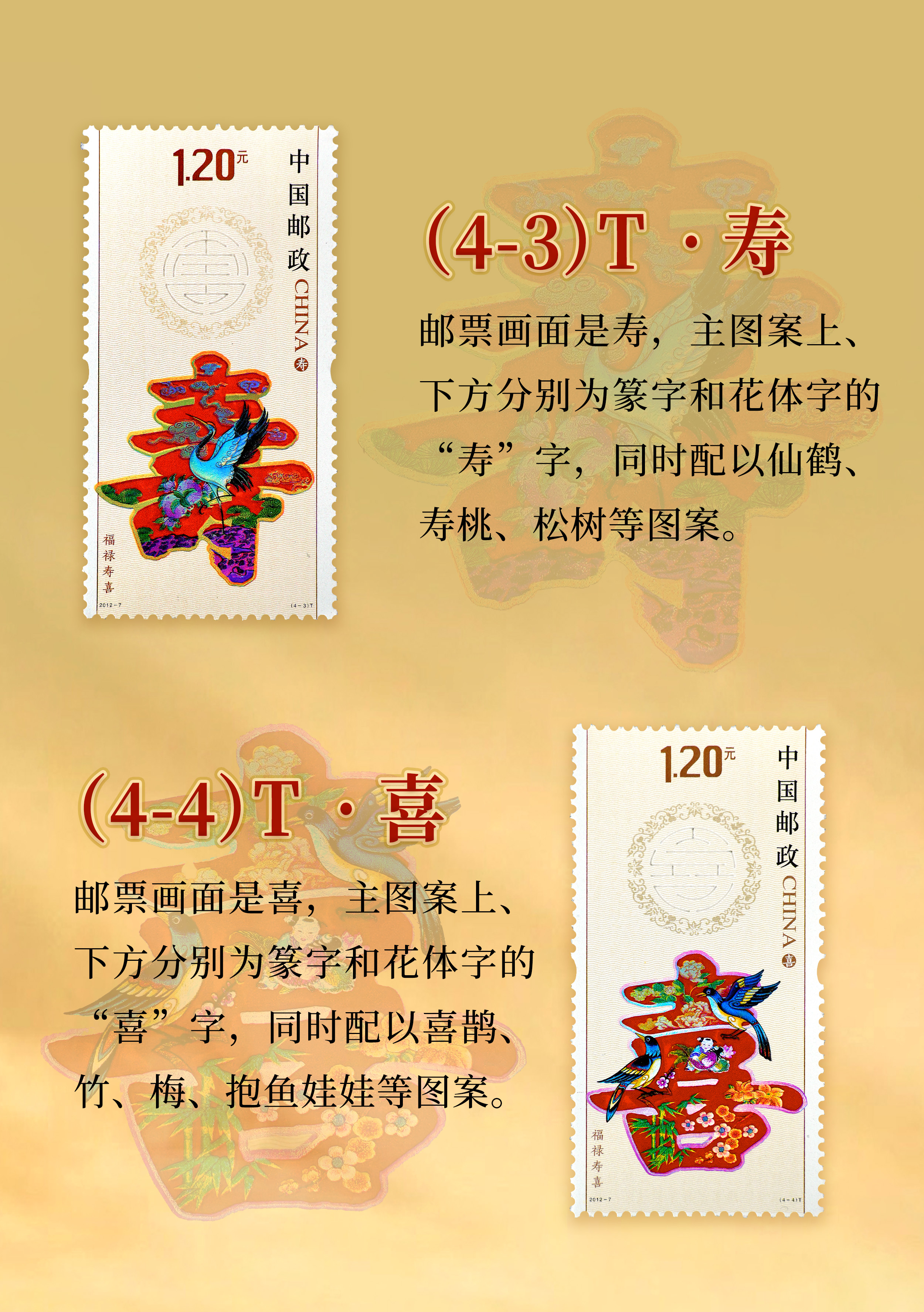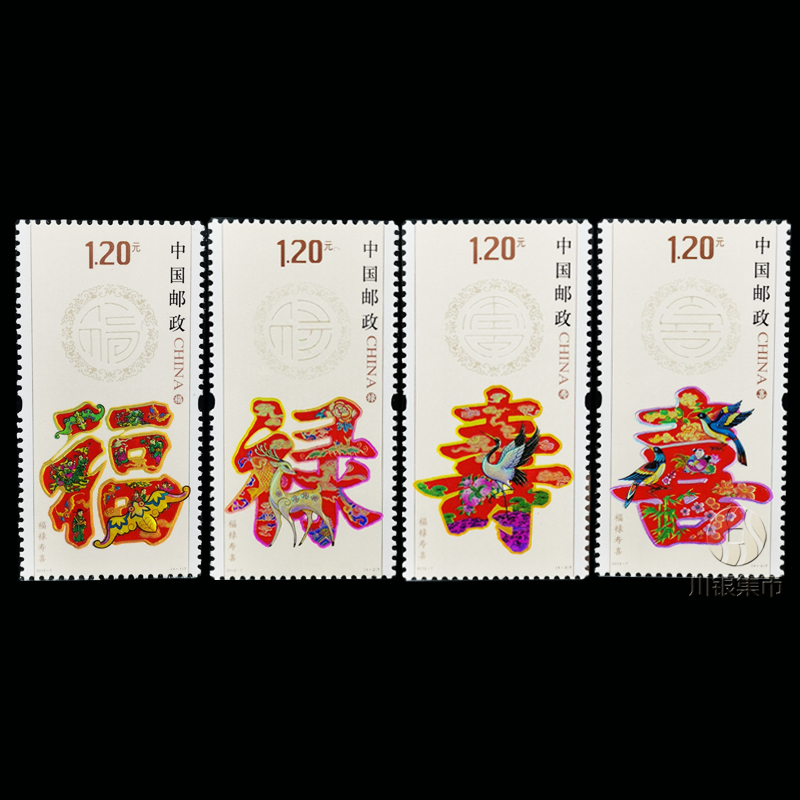 【喜庆吉祥 色彩鲜艳明亮】【中国邮政】福禄寿喜财邮票摆台 民间花字体 丰富的吉祥寄语
