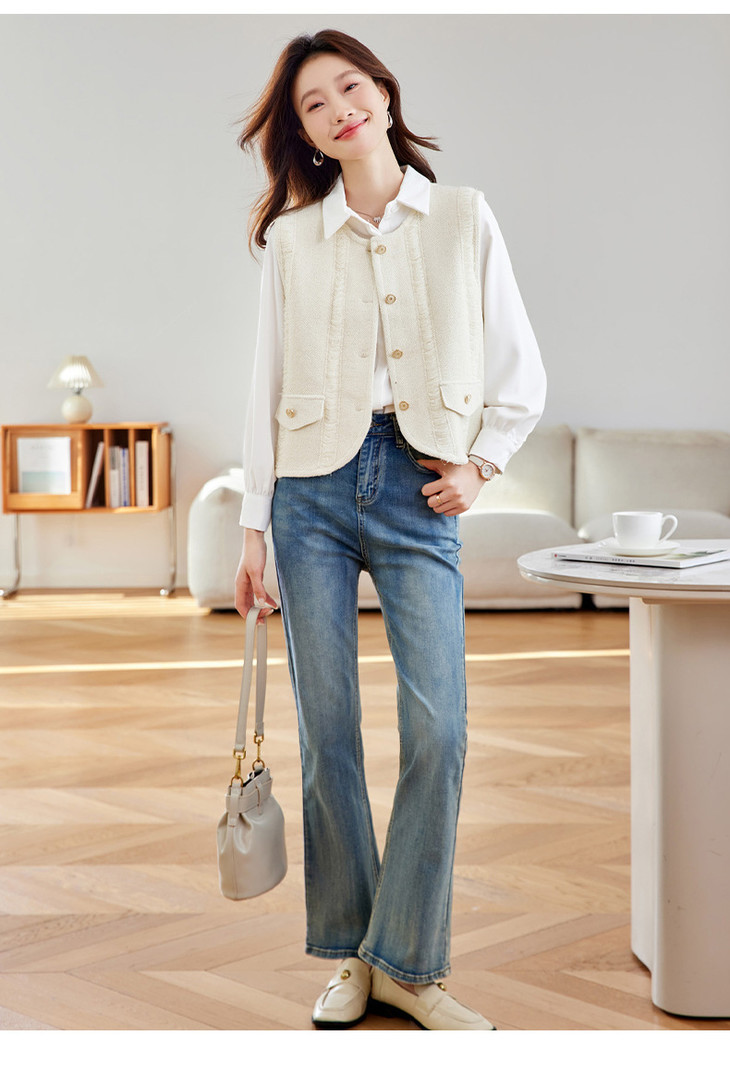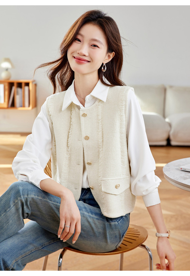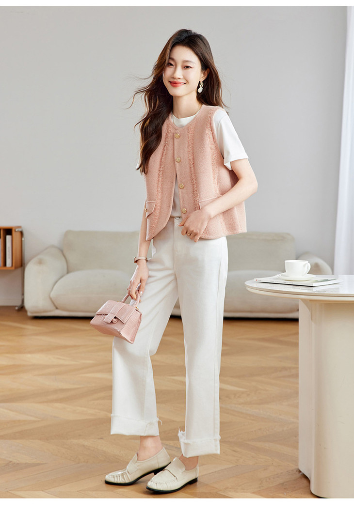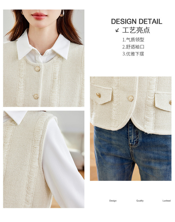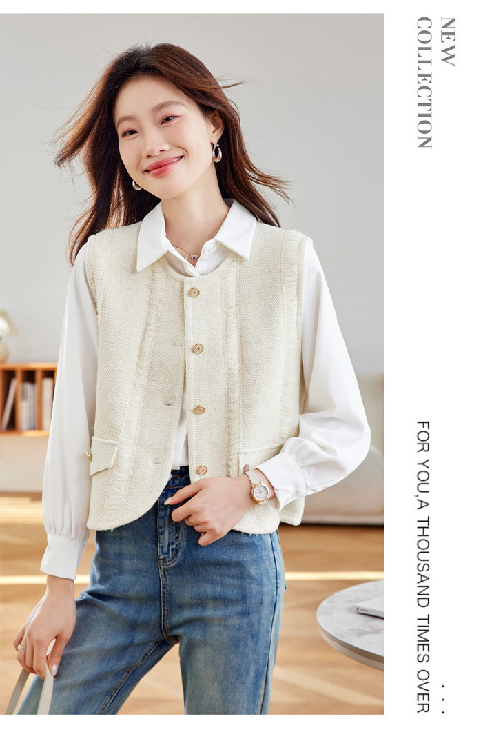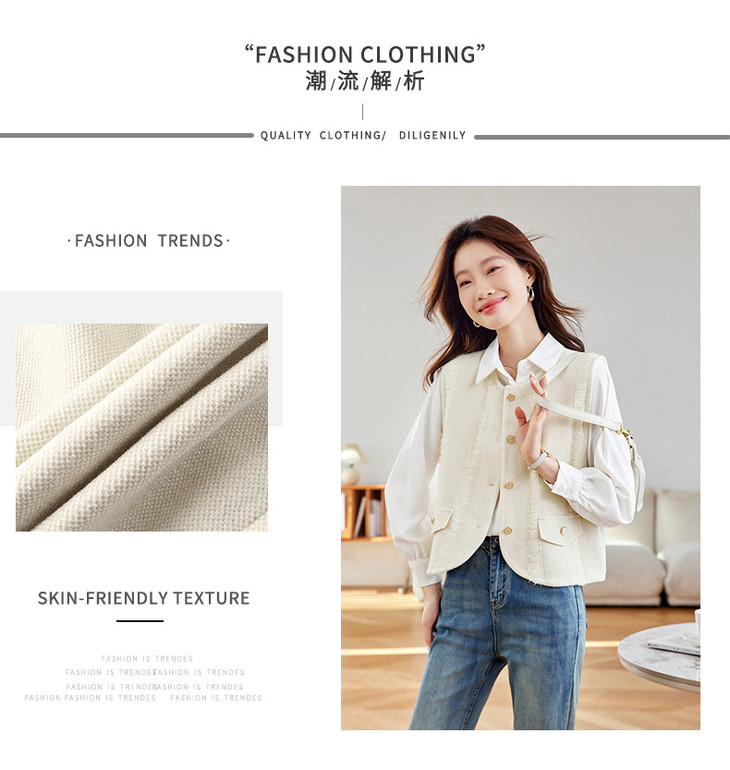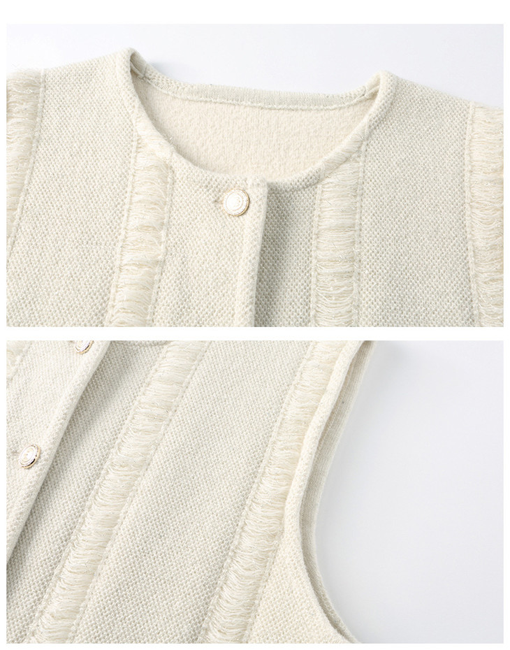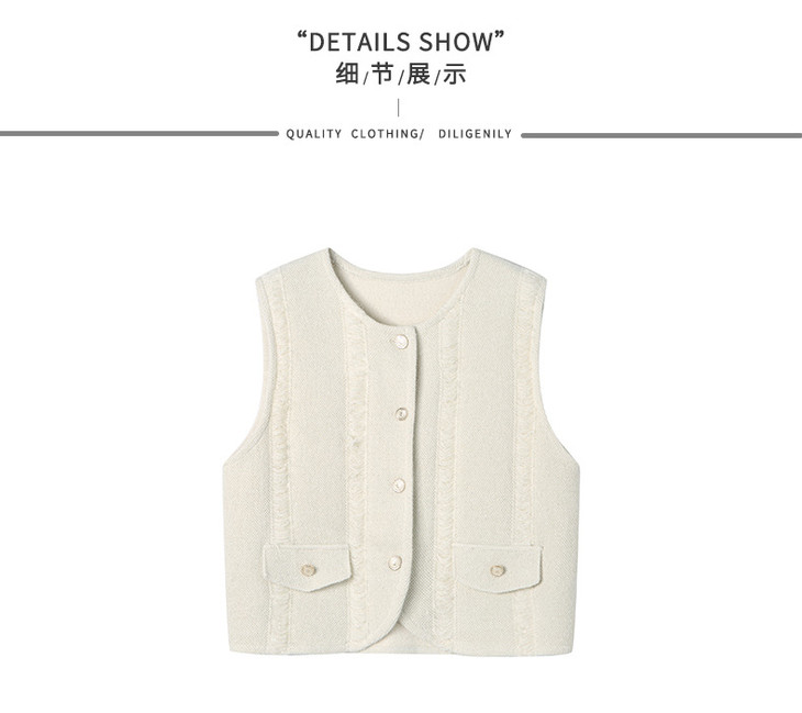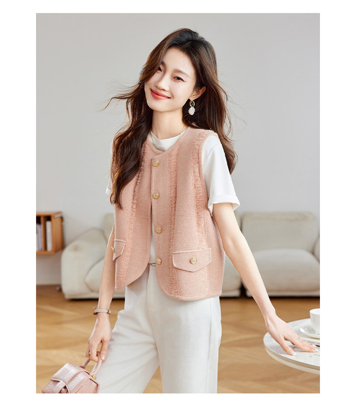 时尚气质小香风无袖通勤,圆领金属扣马甲开衫针织衫CC-16-9701