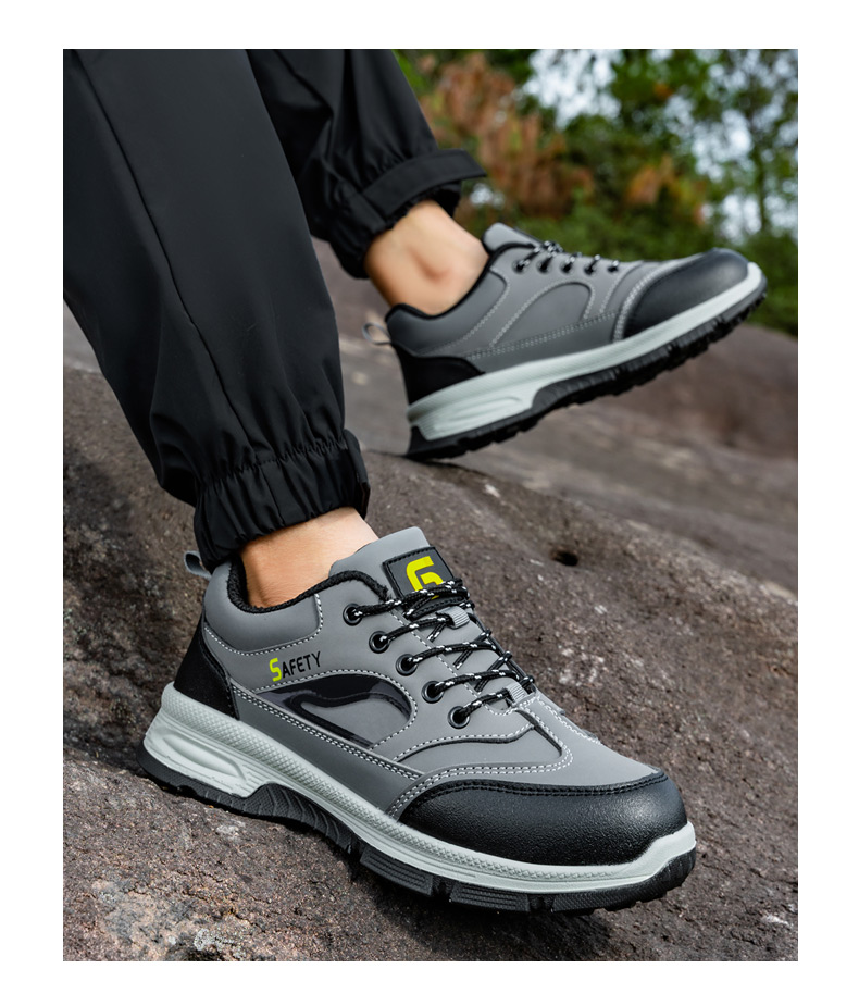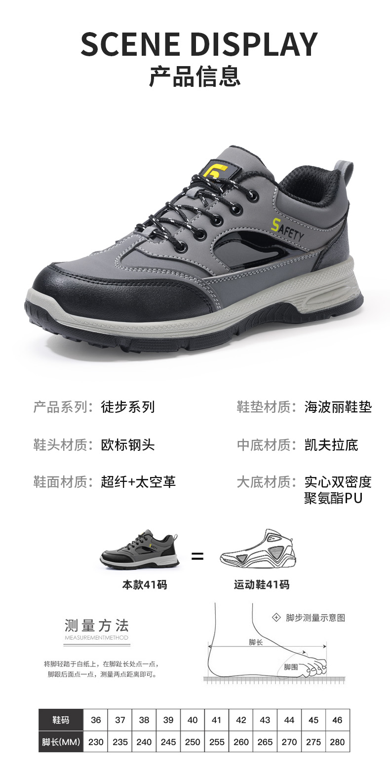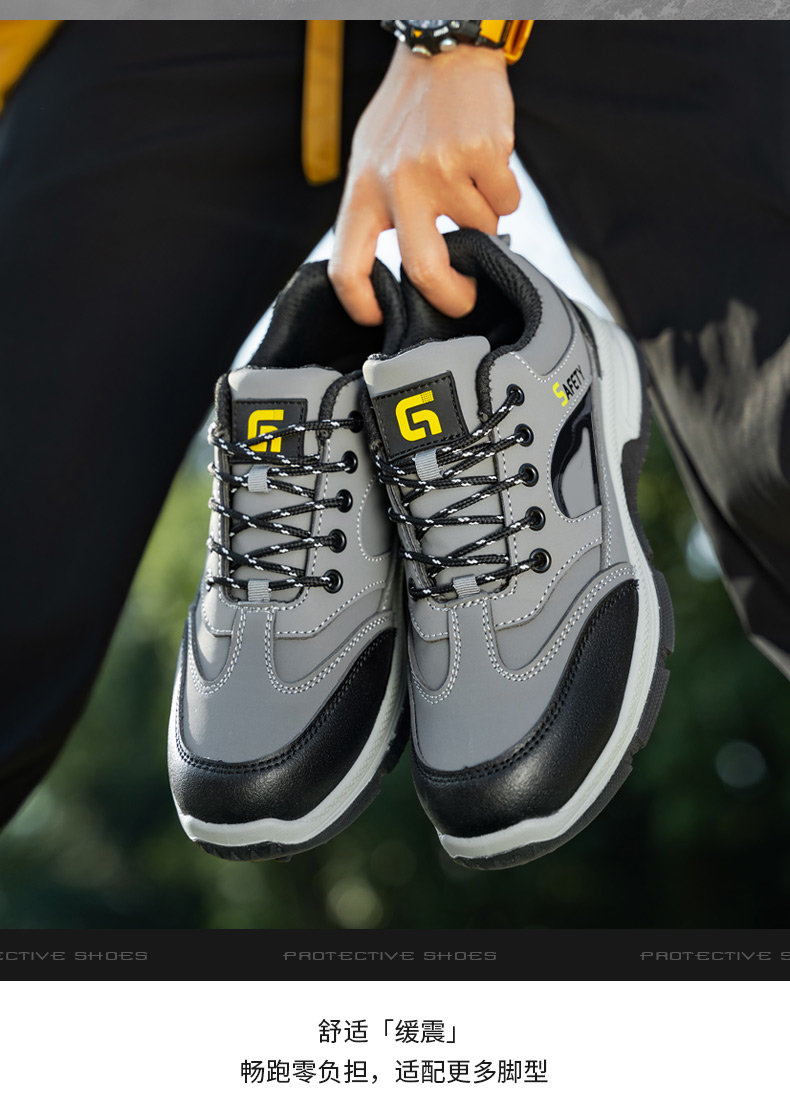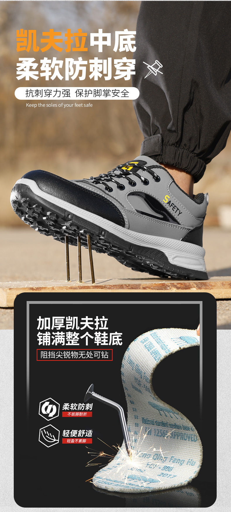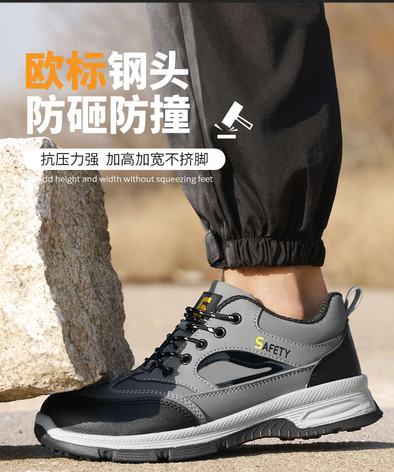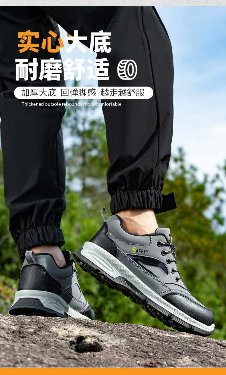 新款男士防砸防刺超纤 太空革劳保鞋实心底耐磨