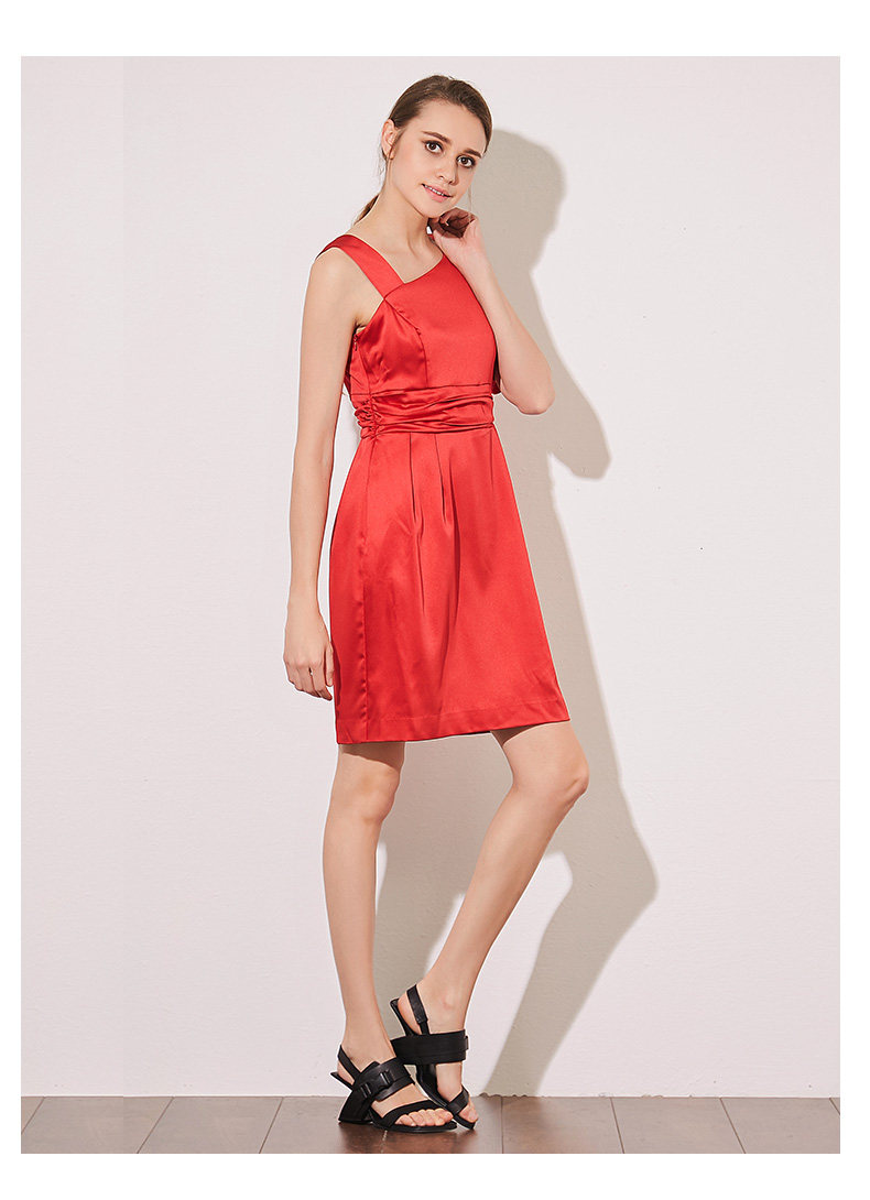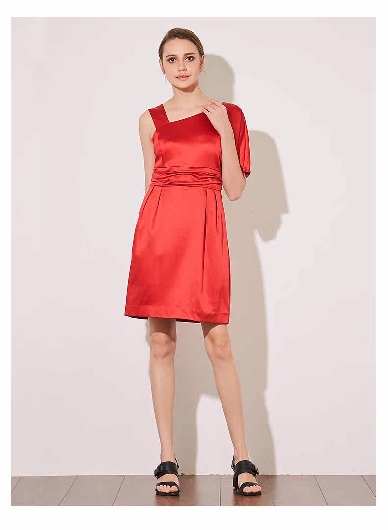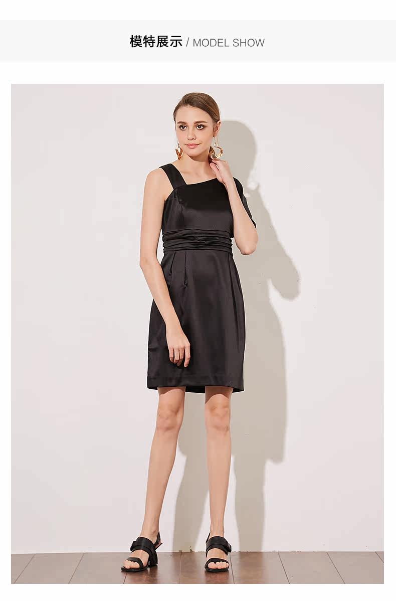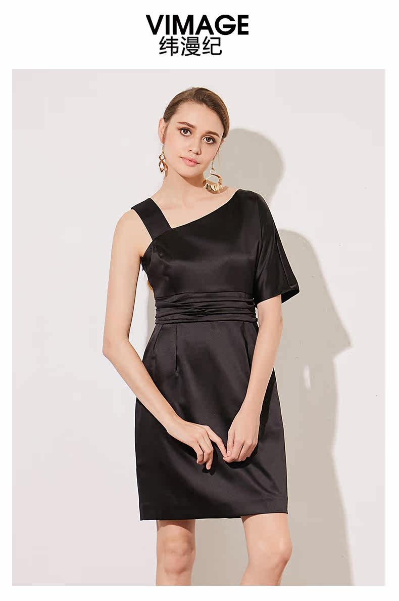 VIMAGE纬漫纪夏季新款斜领吊带褶皱拼接短袖A字裙连衣裙女夏V507104