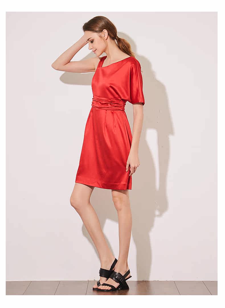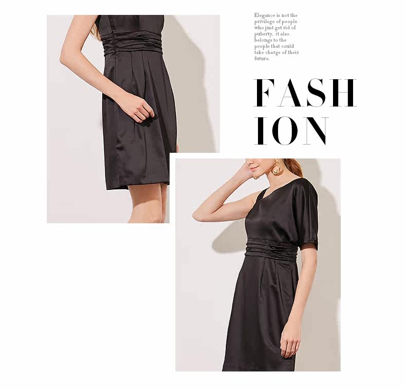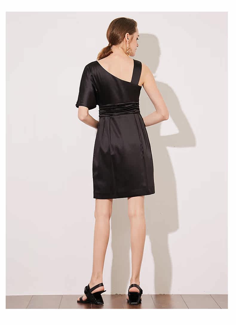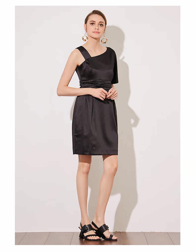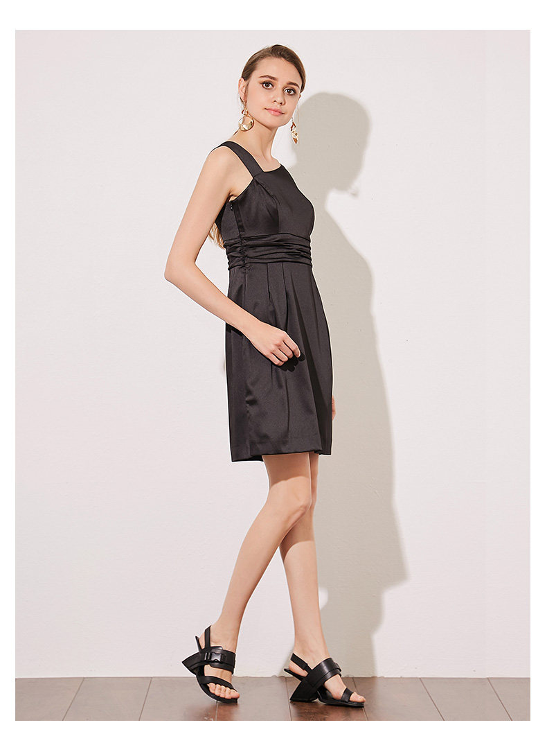 VIMAGE纬漫纪夏季新款斜领吊带褶皱拼接短袖A字裙连衣裙女夏V507104