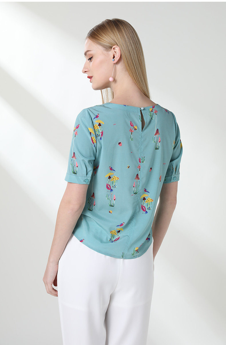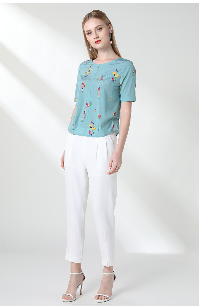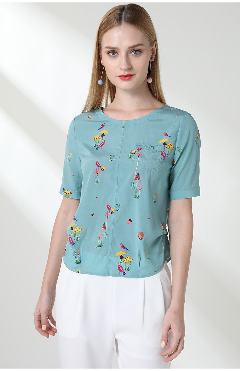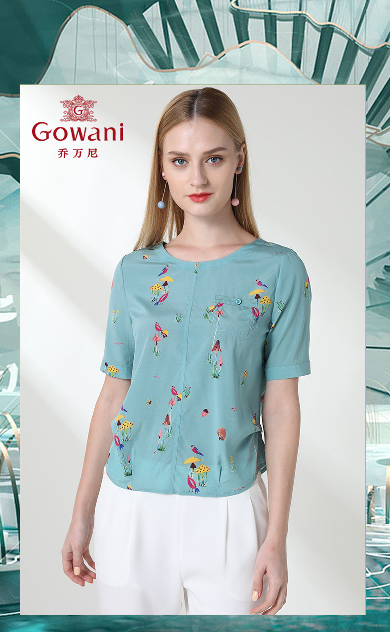 乔万尼真丝上衣女夏印花欧货时尚宽松薄款短袖桑蚕丝衬衫EN2C603