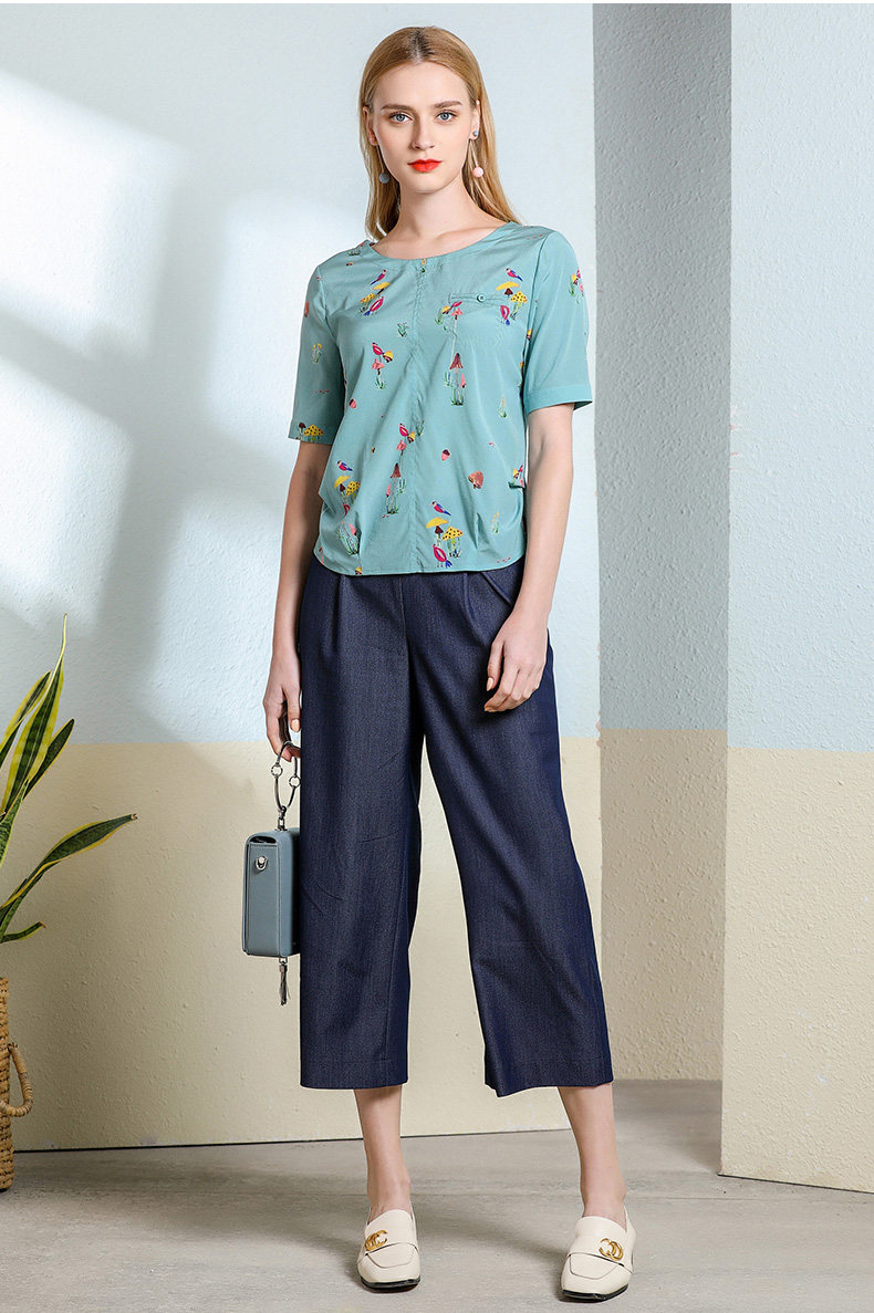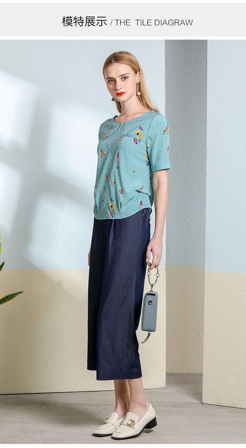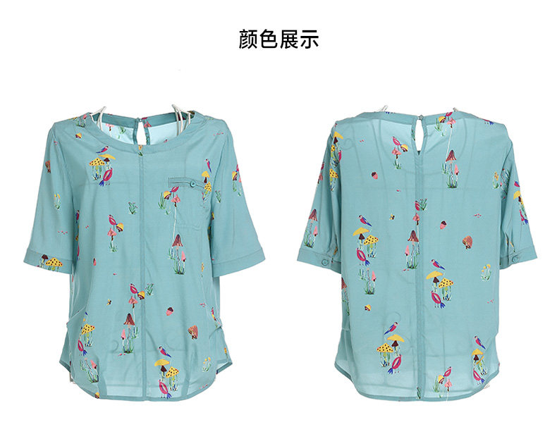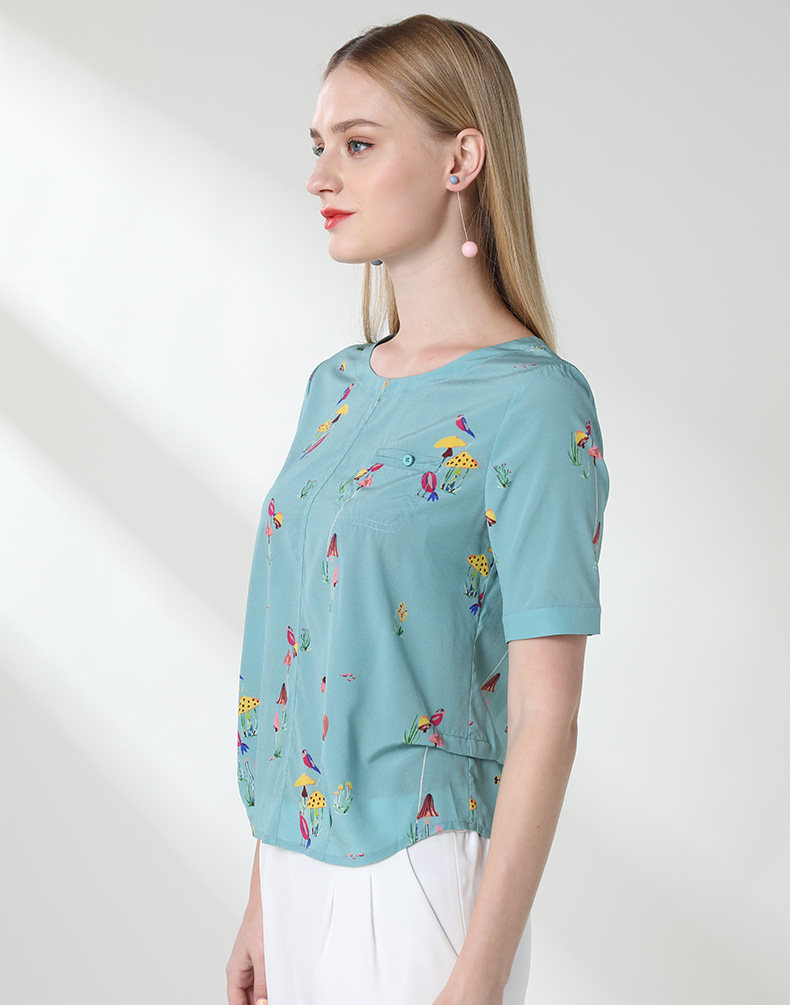 乔万尼真丝上衣女夏印花欧货时尚宽松薄款短袖桑蚕丝衬衫EN2C603