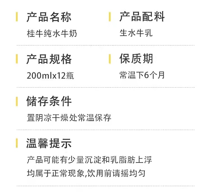 200ml*12桂牛高钙水牛奶 营养丰富 口感清甜