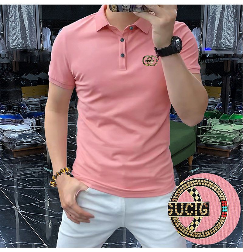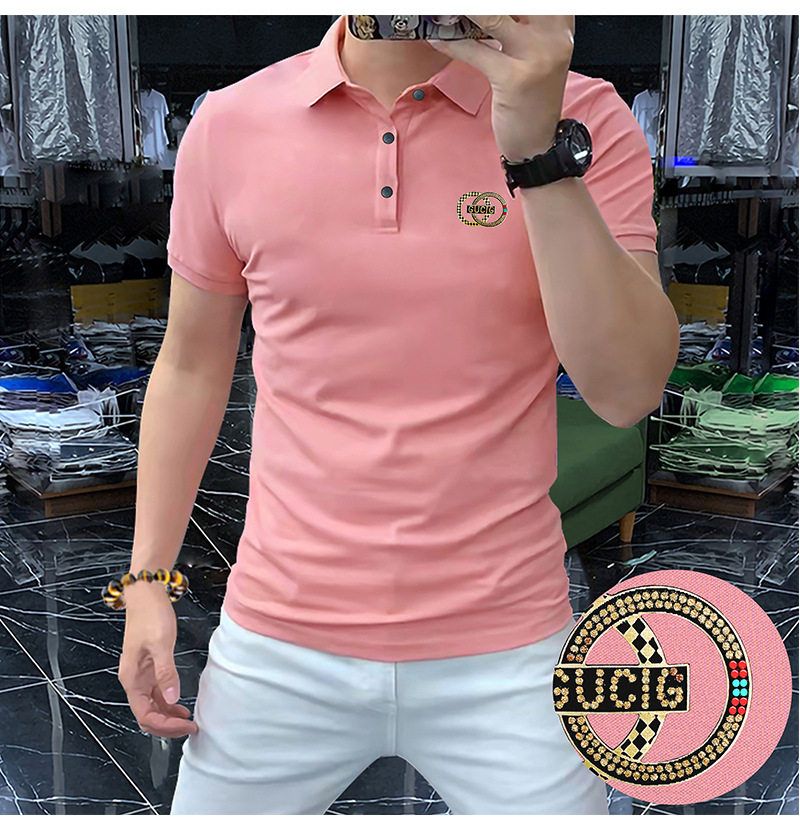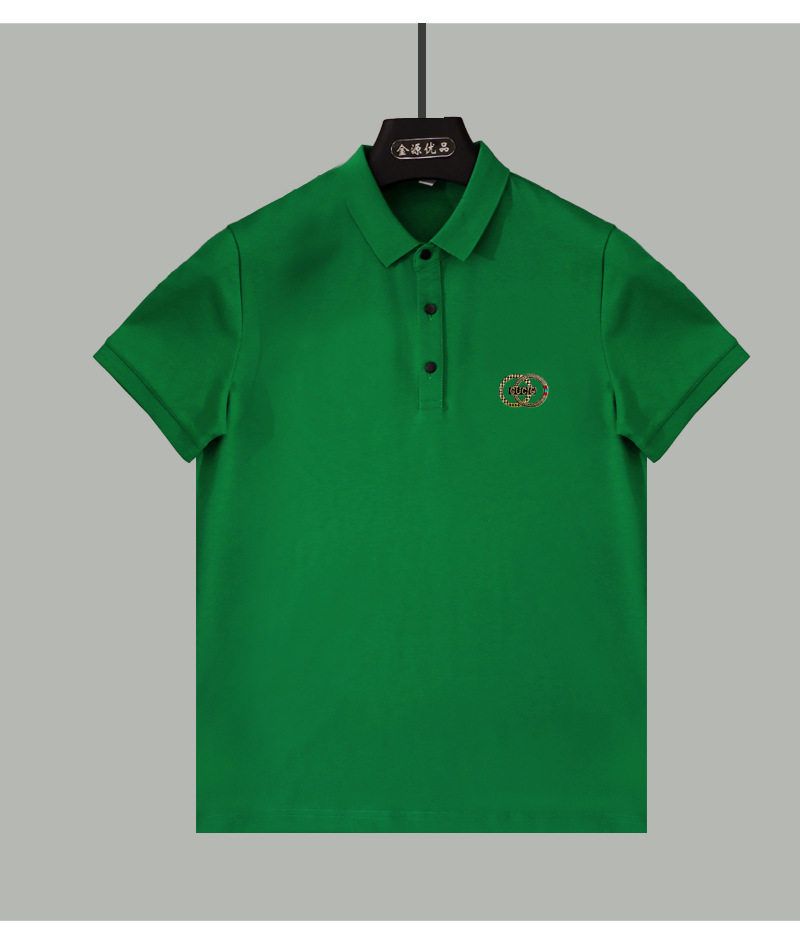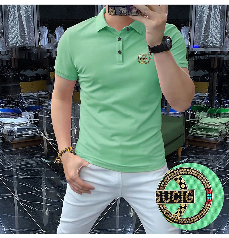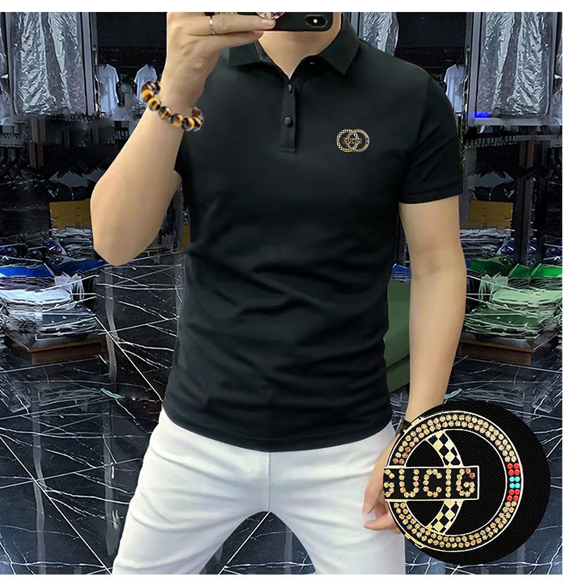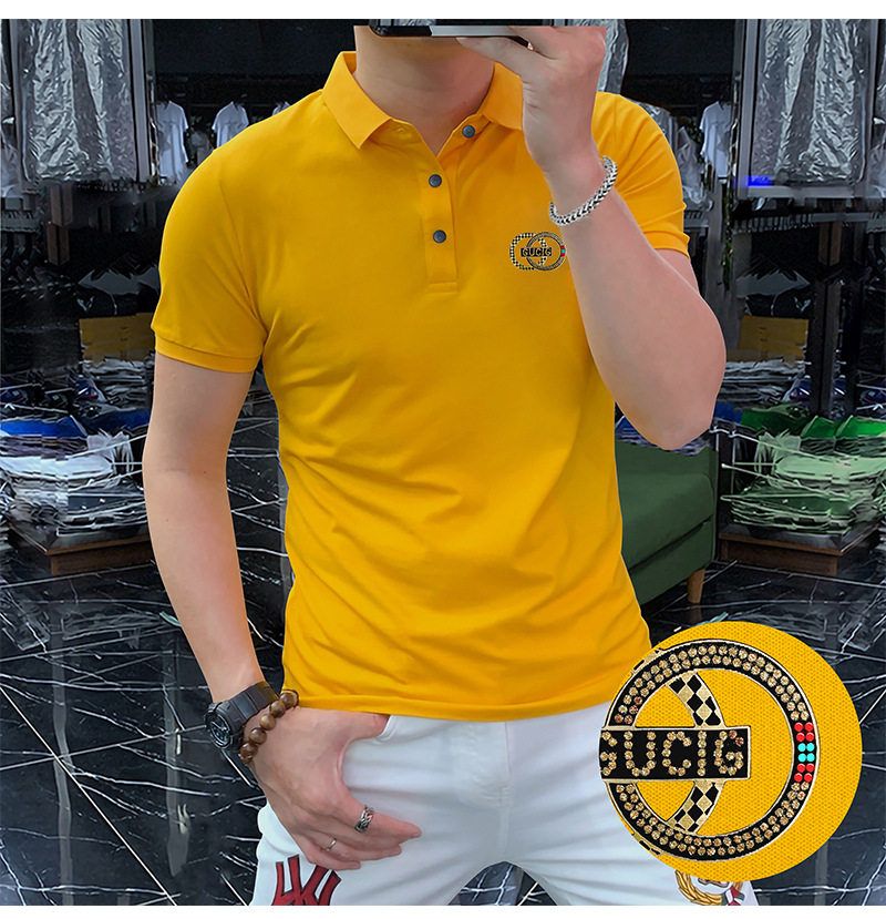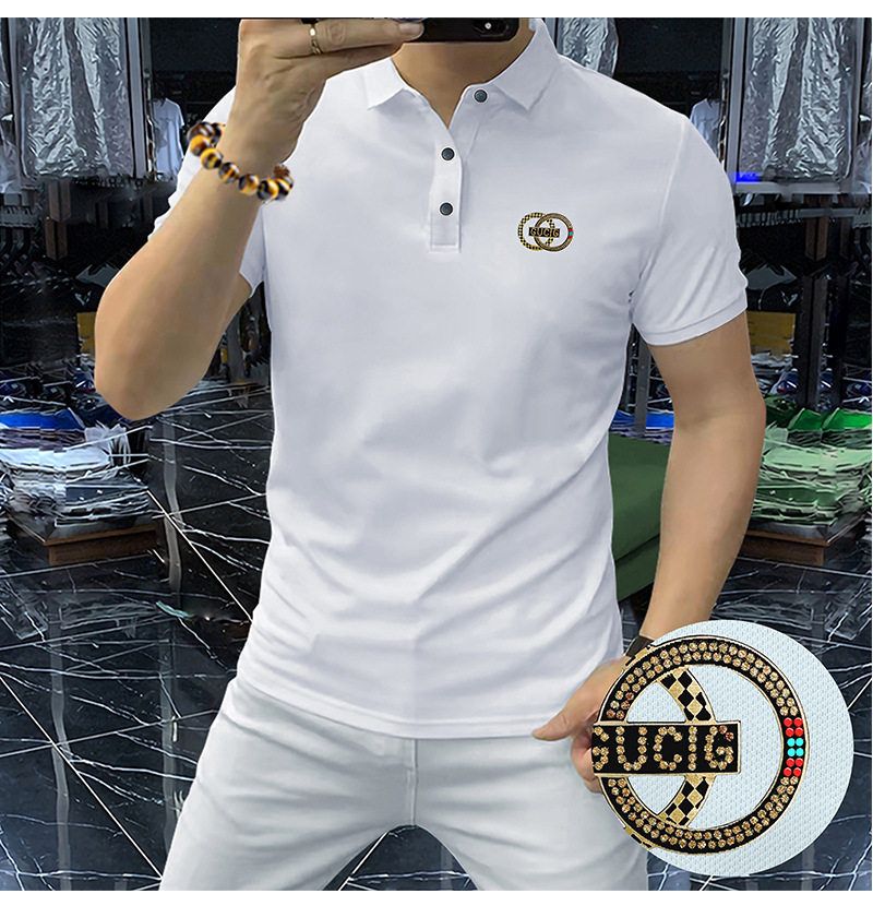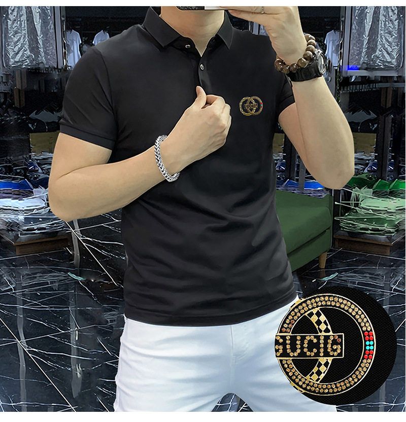 高端轻奢男商务烫钻字母翻领短袖潮流时尚现货半袖男装POLO JYYP-958#*