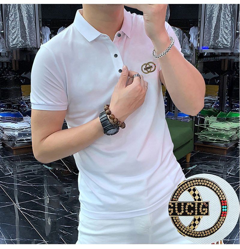 高端轻奢男商务烫钻字母翻领短袖潮流时尚现货半袖男装POLO    JYYP-958#* 商品图3