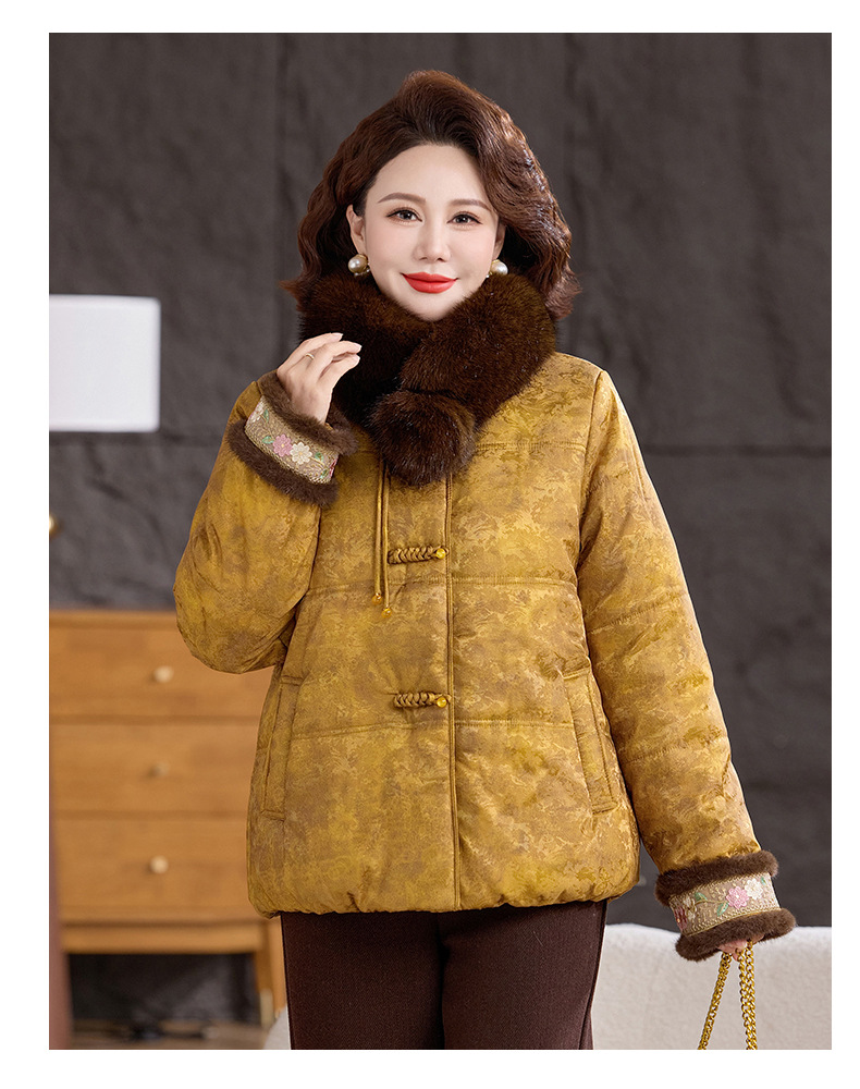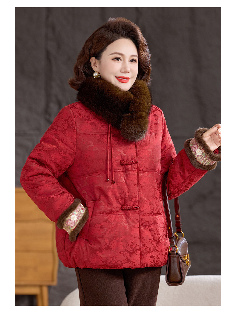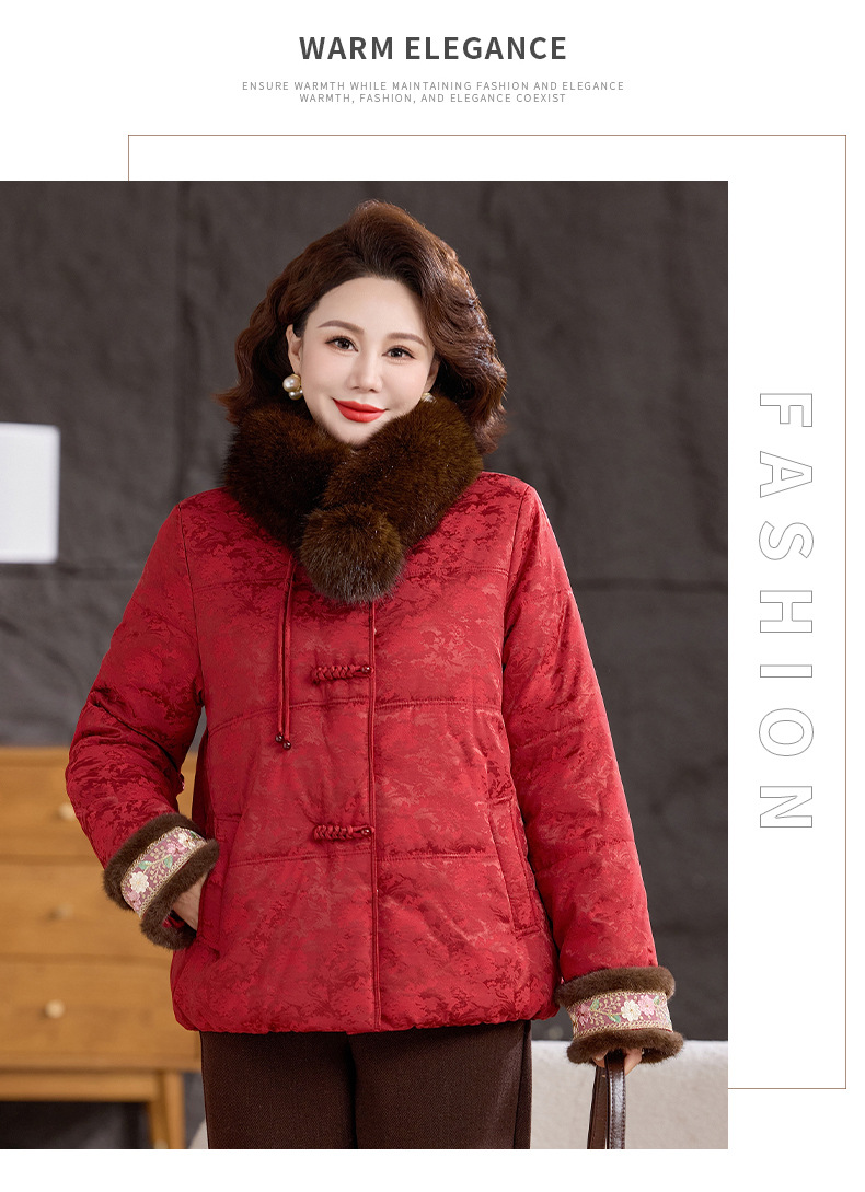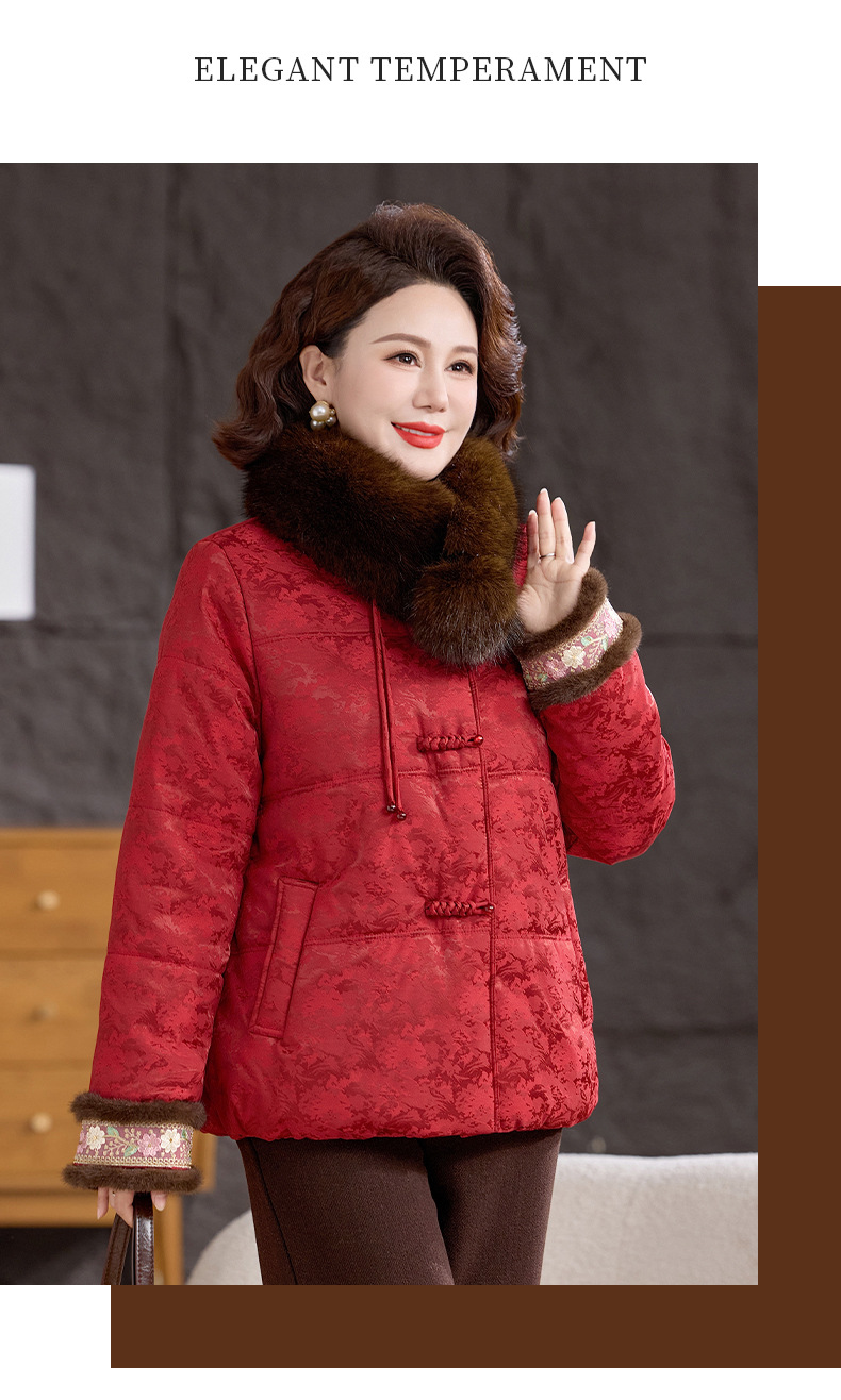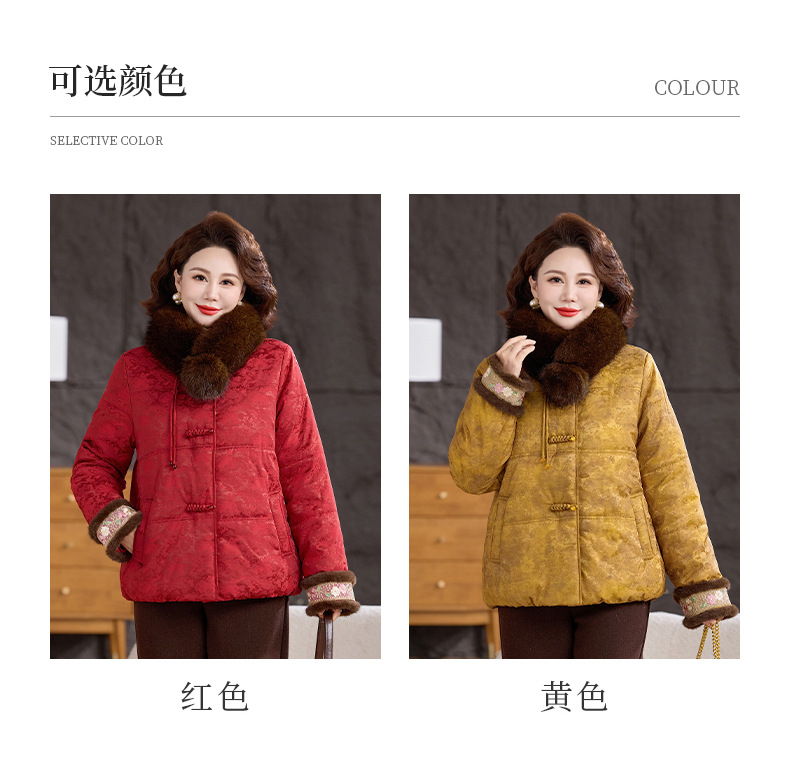 XK 9811加厚保暖冬装妈妈棉衣复古棉服大毛领
