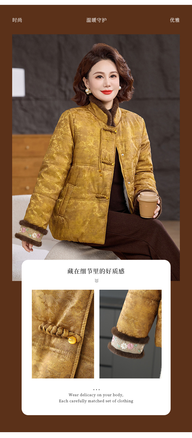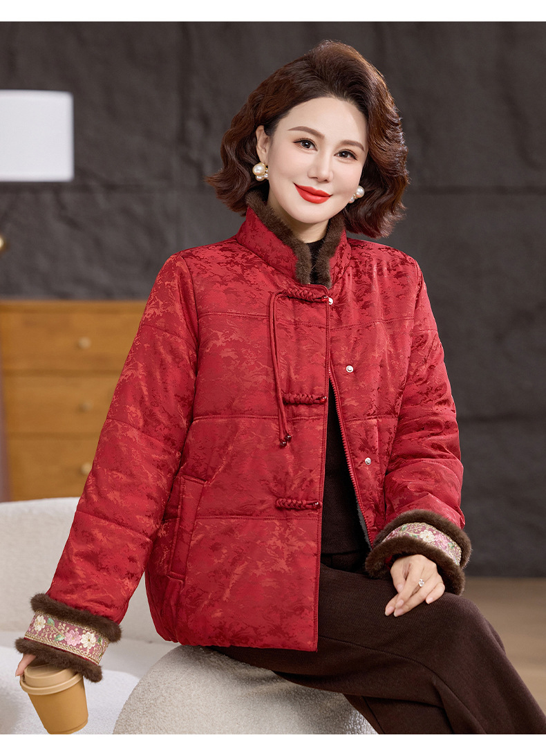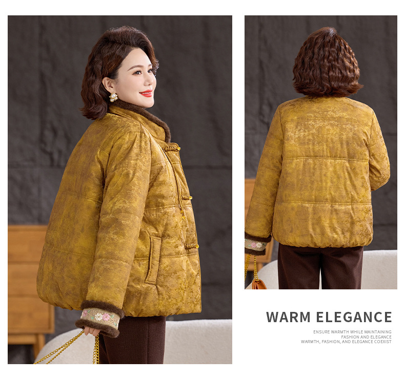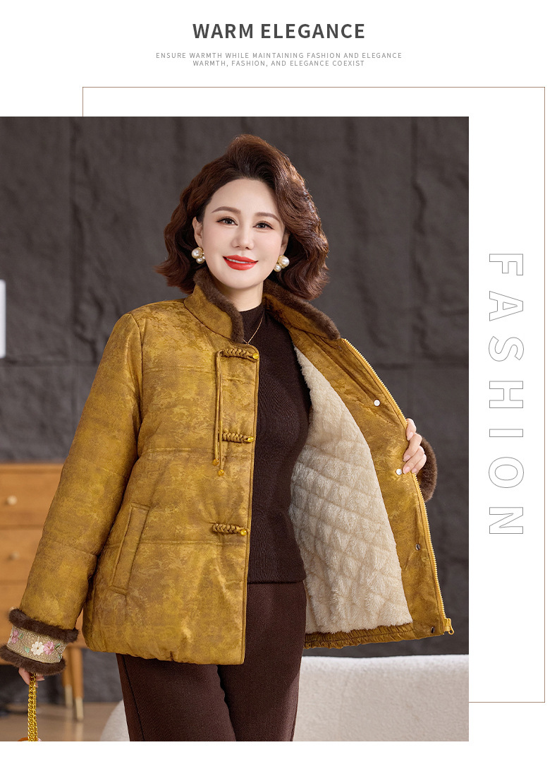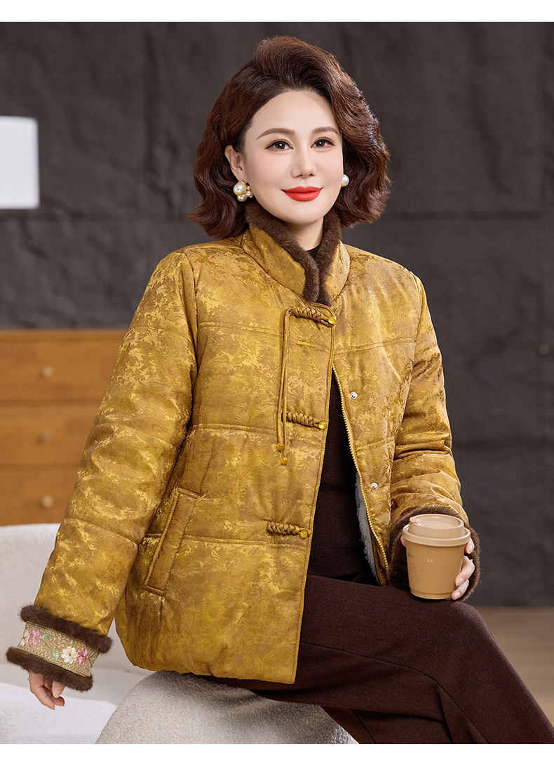 XK 9811加厚保暖冬装妈妈棉衣复古棉服大毛领