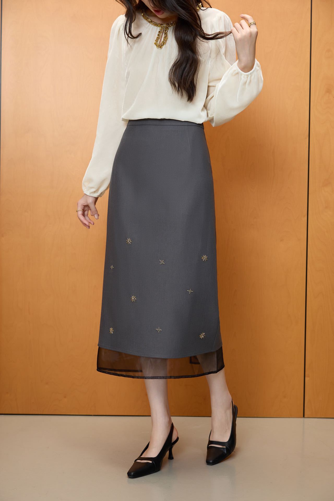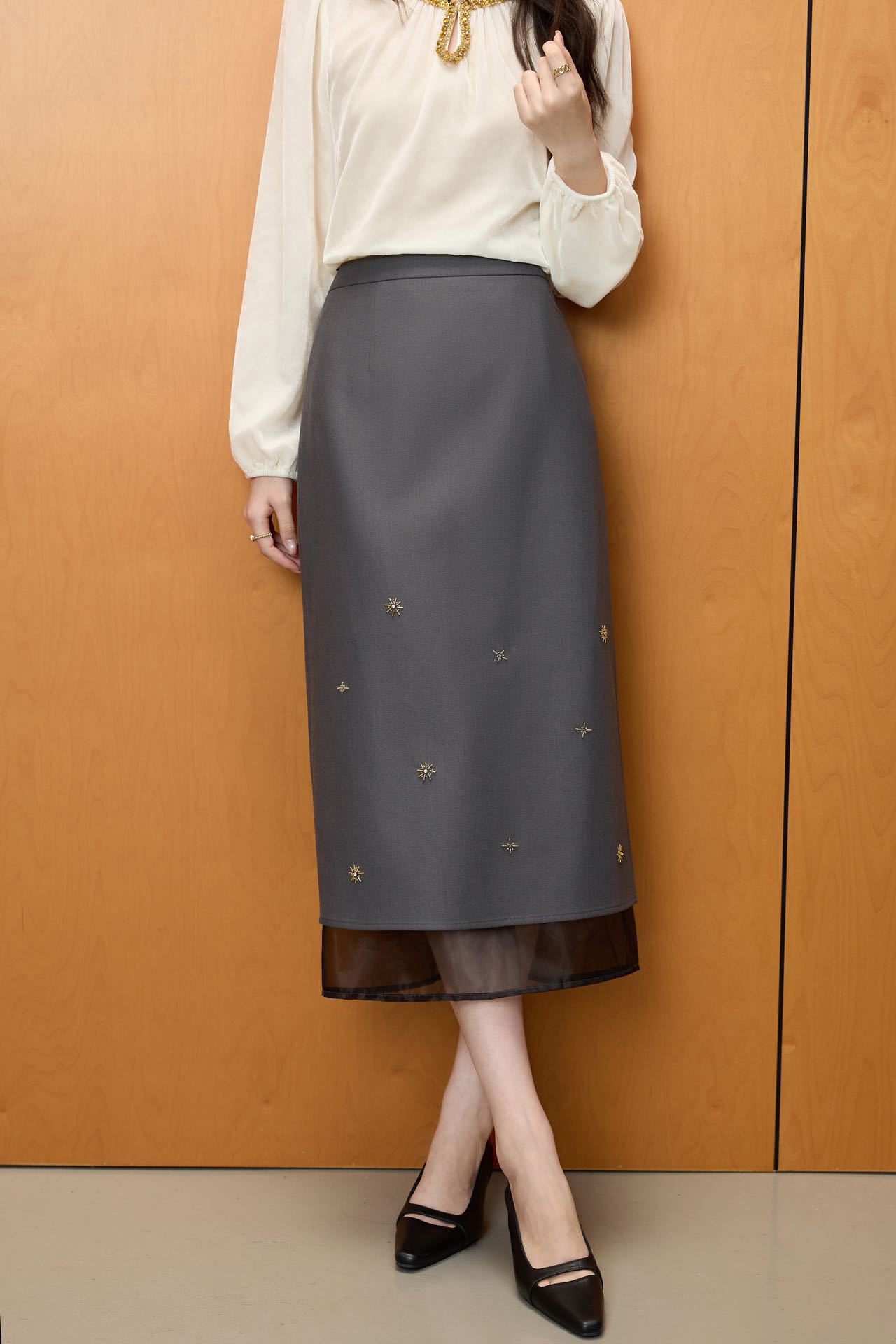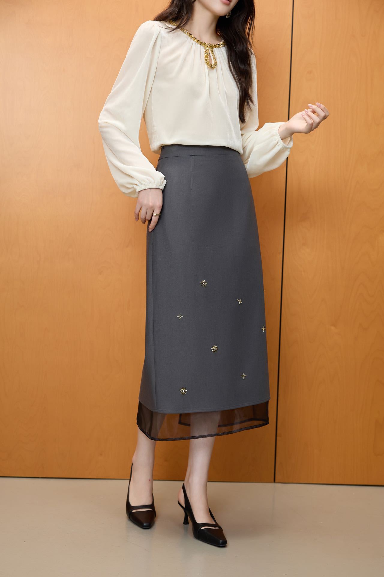 「自」全新升级【铂金会员183/天猫239/差价56】(41620)洛诗琳气质镶钻半身裙2025秋季优雅高腰显瘦中长复古A字裙