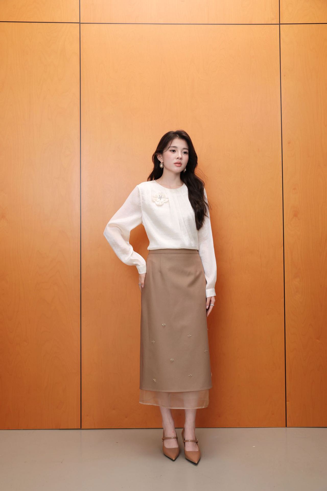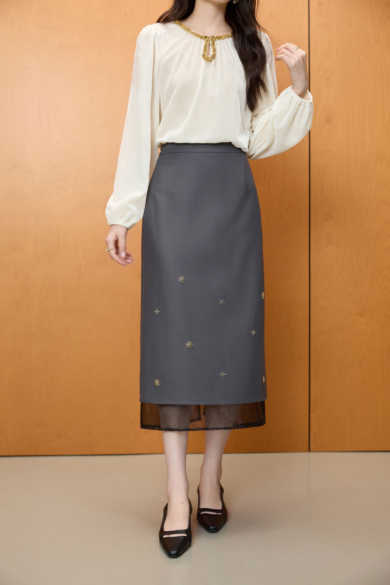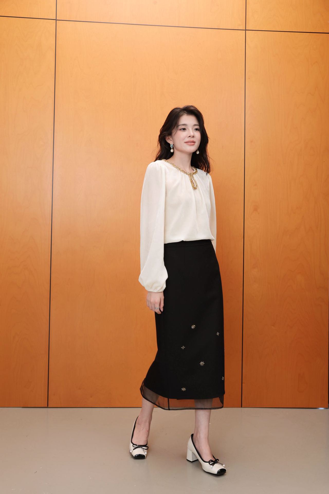 「自」全新升级【铂金会员183/天猫239/差价56】(41620)洛诗琳气质镶钻半身裙2025秋季优雅高腰显瘦中长复古A字裙