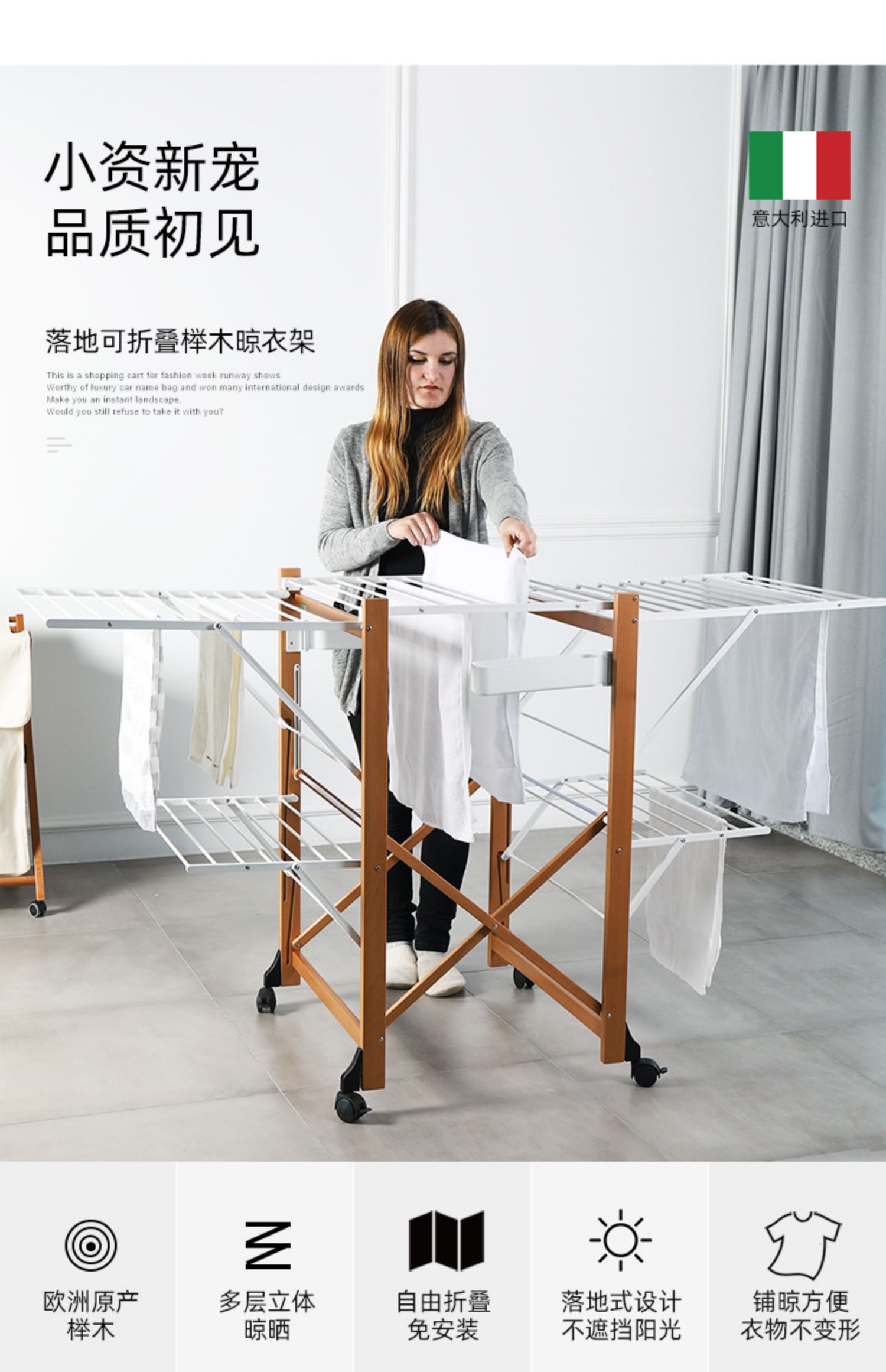【利快】DLAC意大利进口实木晾衣架落地折叠室内移动衣架家用挂衣架晾晒架