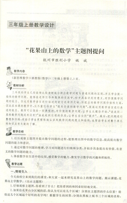 张天孝主编 三年级教学设计和实验 配浙教版数学教材