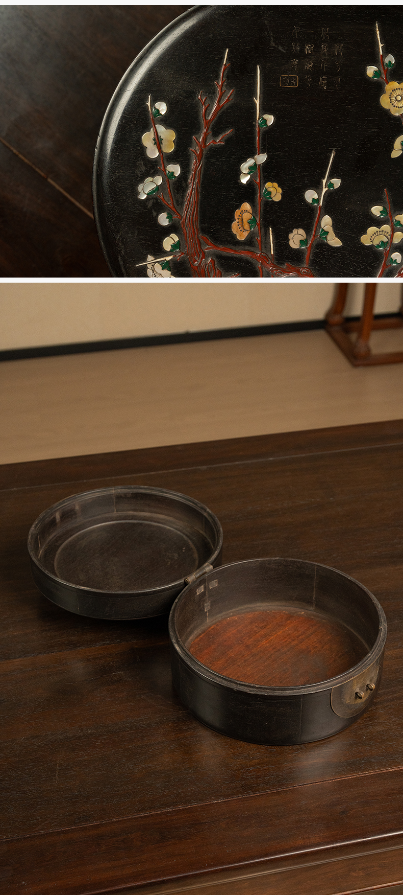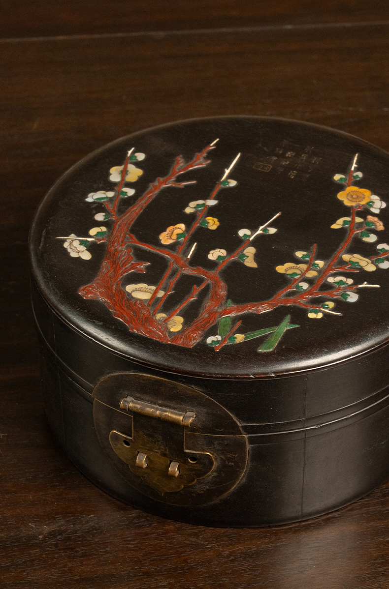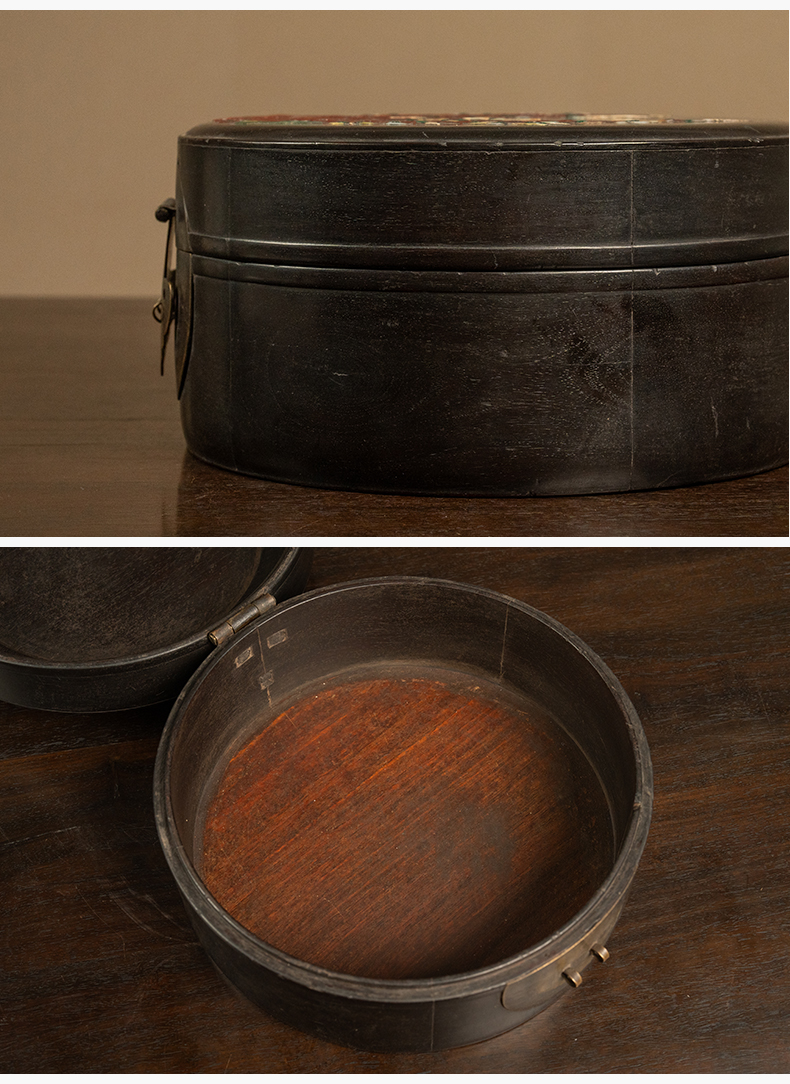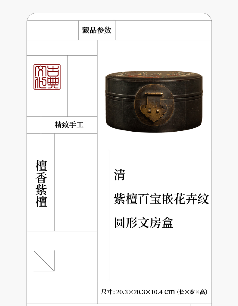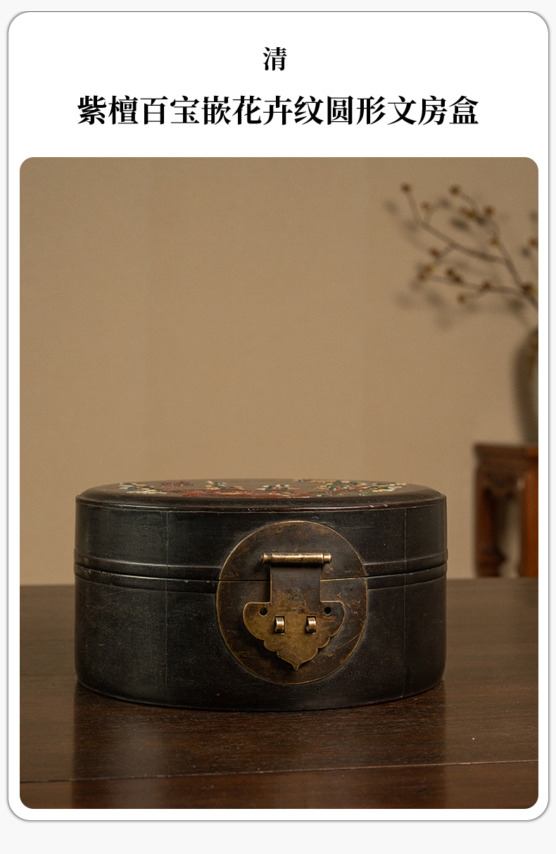 清 紫檀百宝嵌花卉纹圆形文房盒