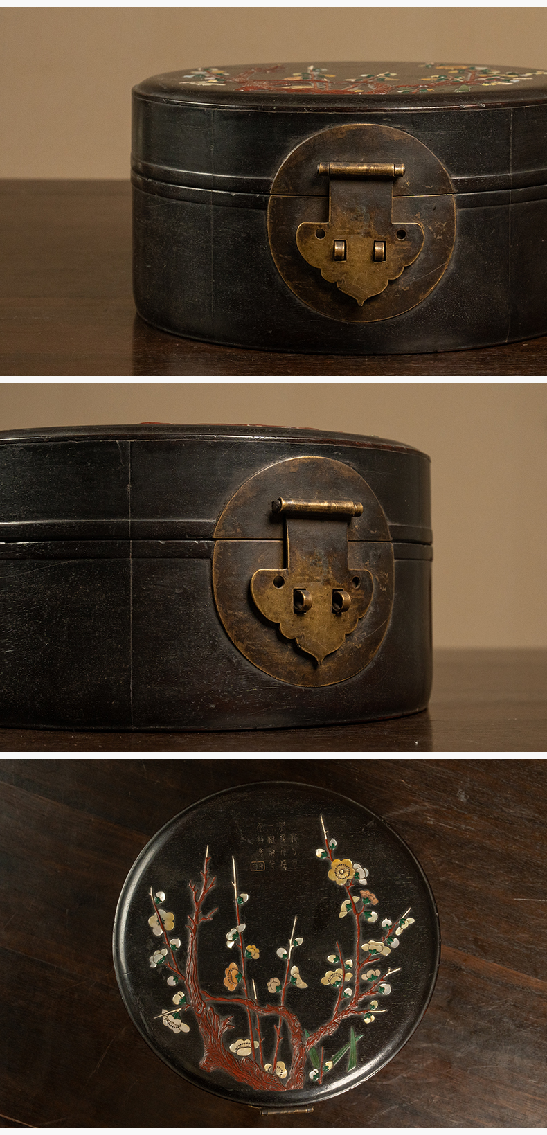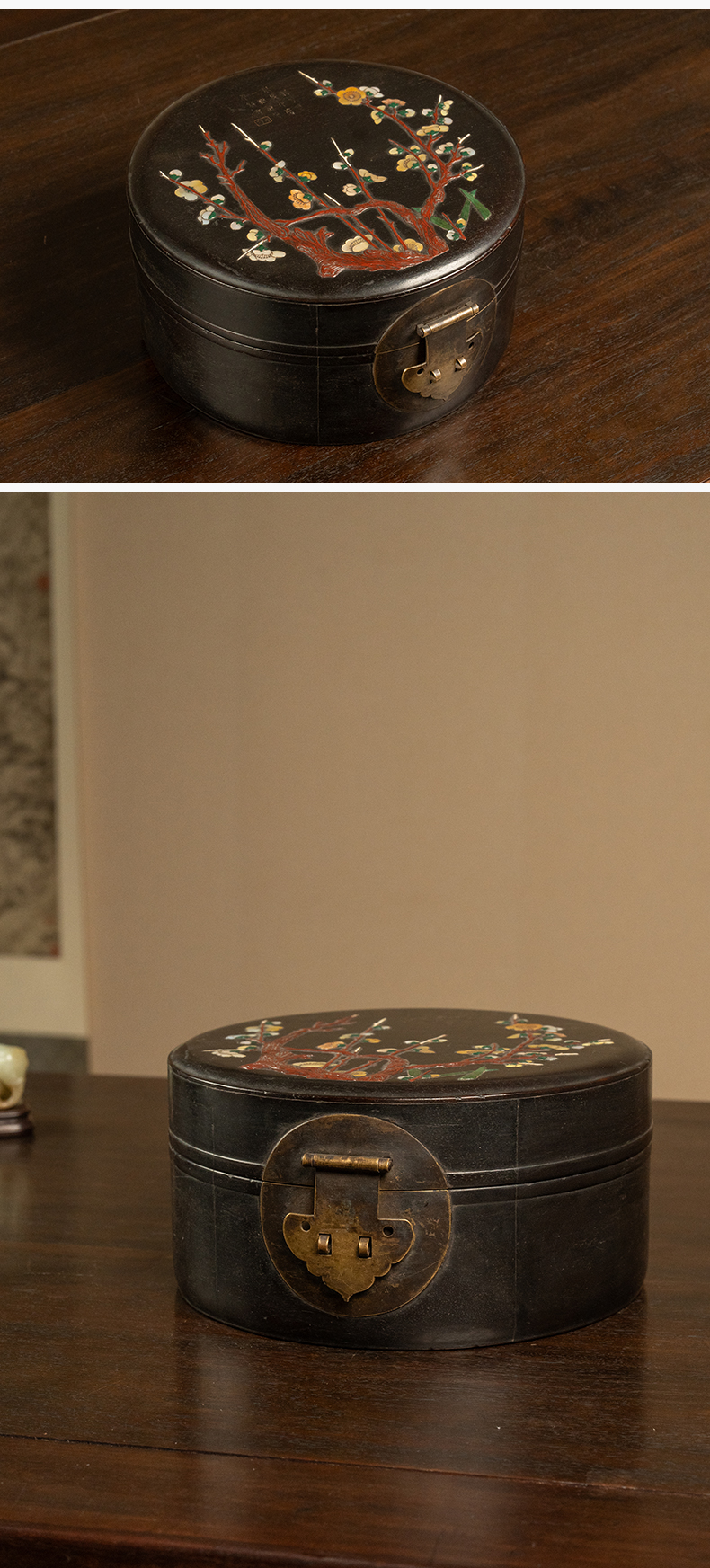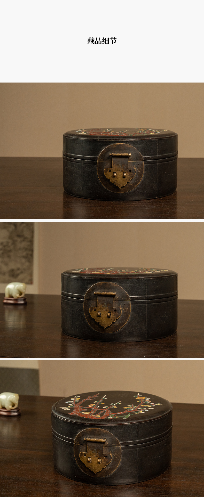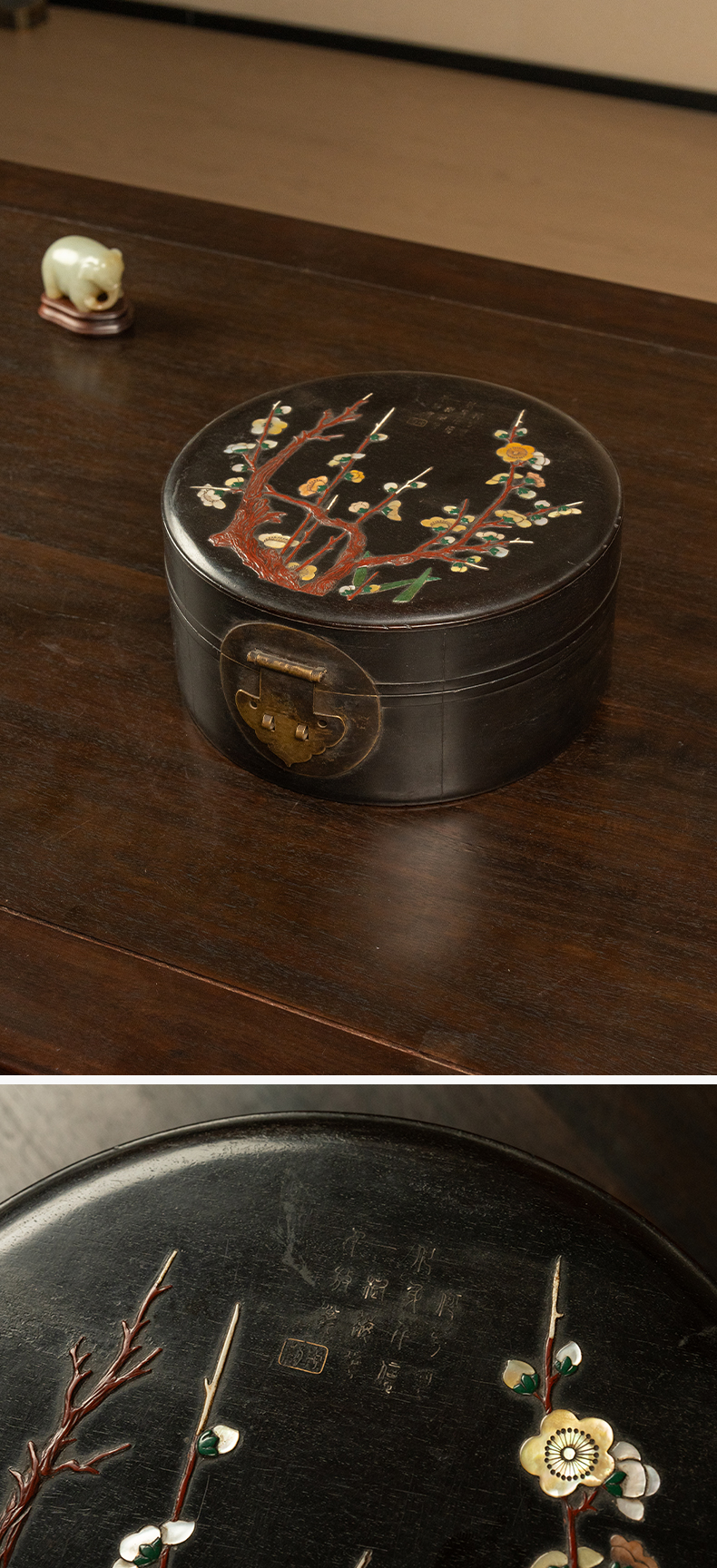 清 紫檀百宝嵌花卉纹圆形文房盒
