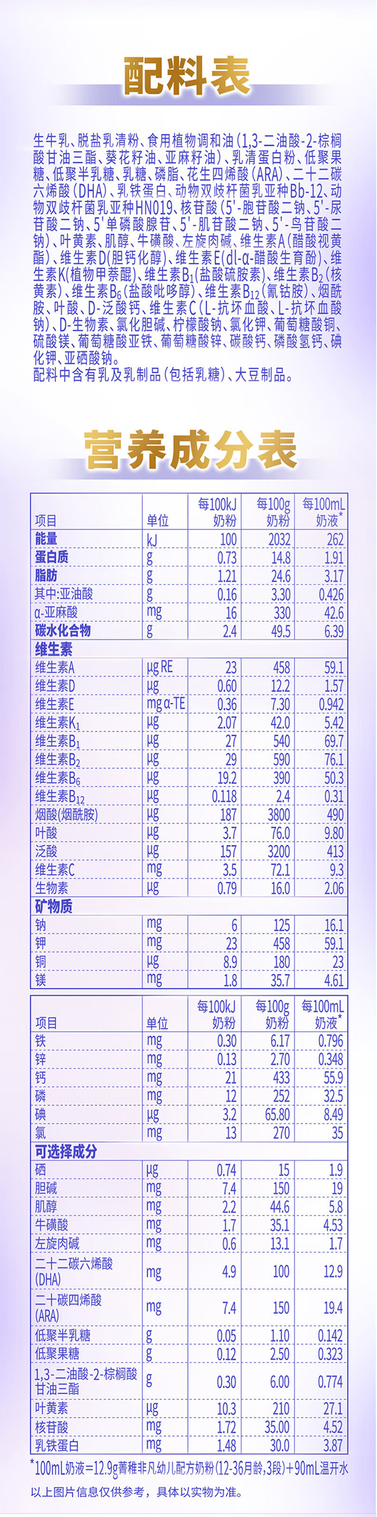 完达山菁稚非凡新国标幼儿配方奶粉3段750g