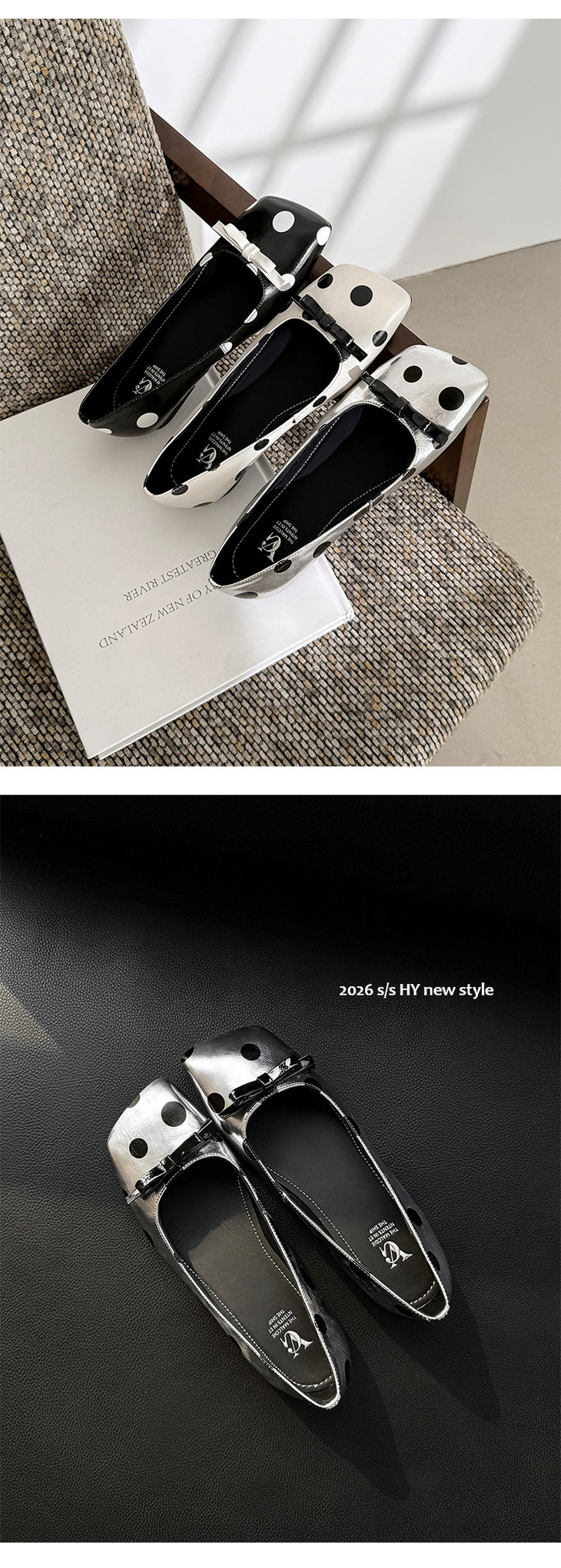 【预售5天】春季新款头层牛皮蝴蝶结波点小清新浅口单鞋&A8767