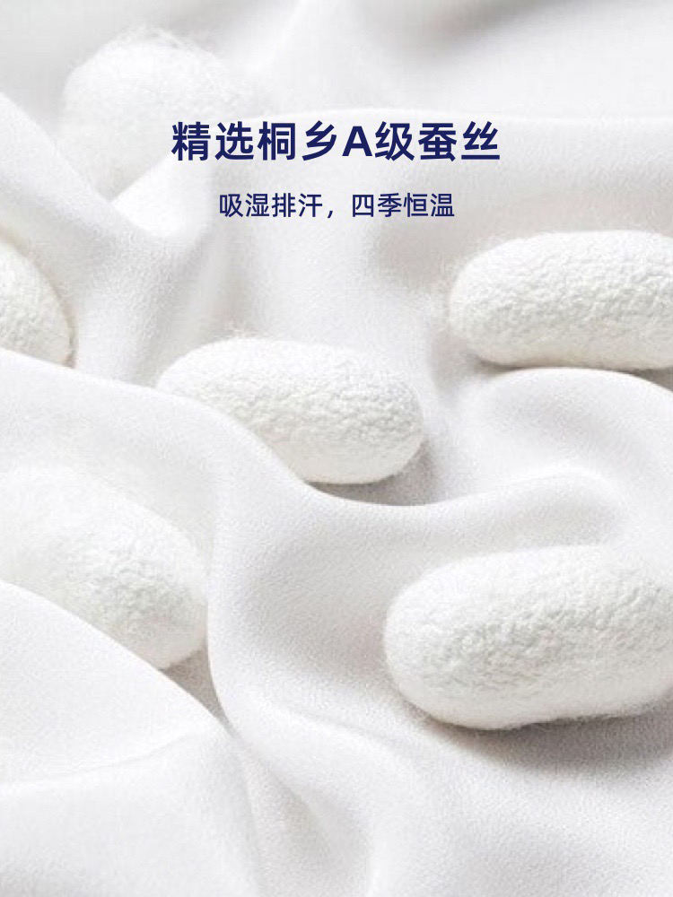 填充物采用天然桑蚕丝精制而成 不添加化学药剂 以防止对蚕丝造成损害 使其保持独特的自然性状 吸湿透气 经久耐用