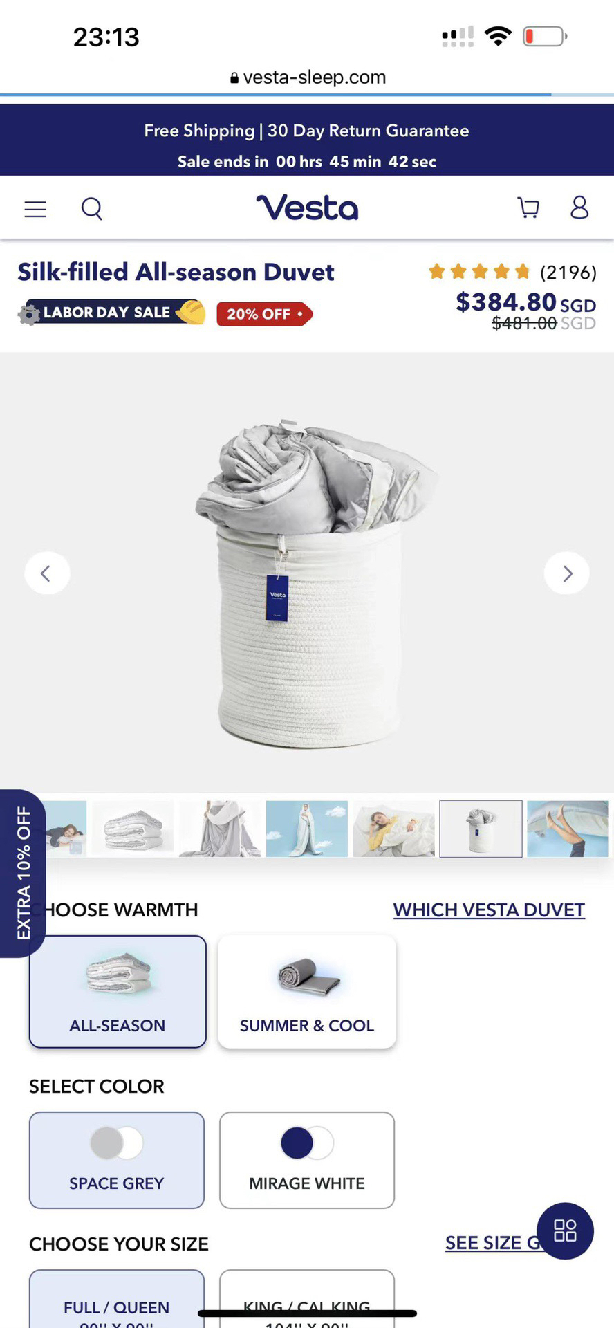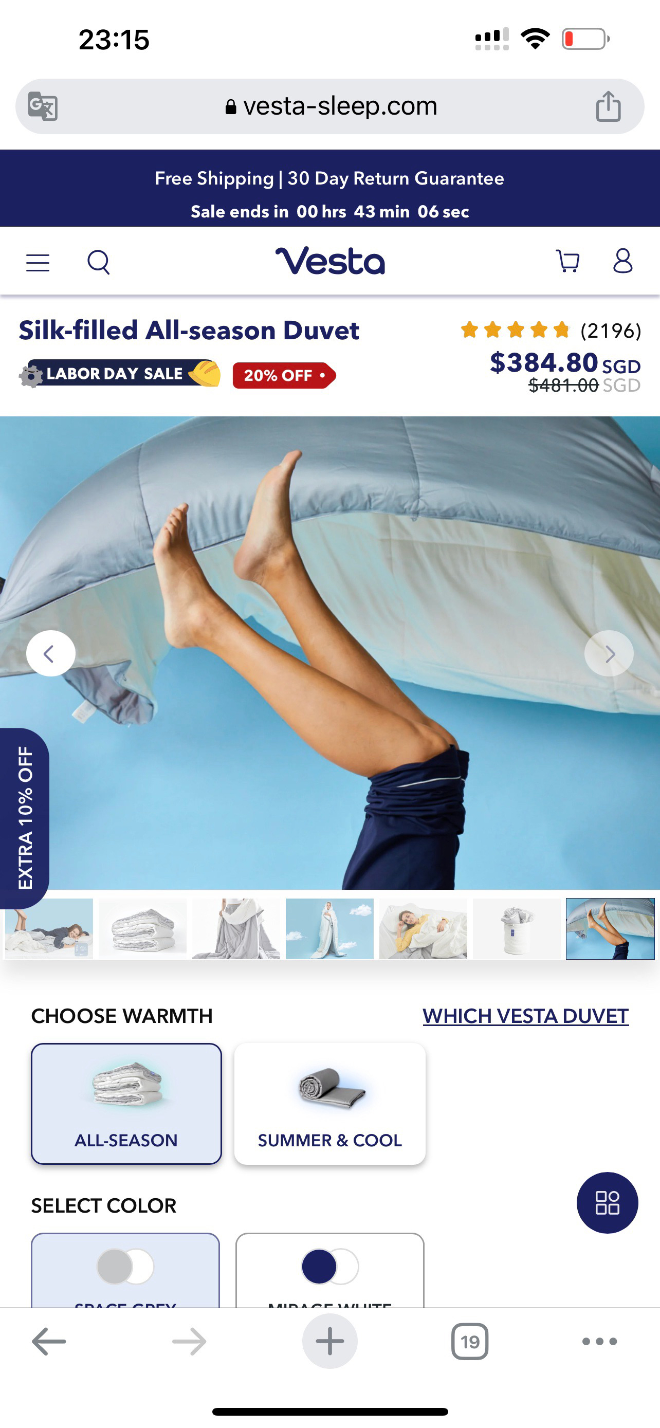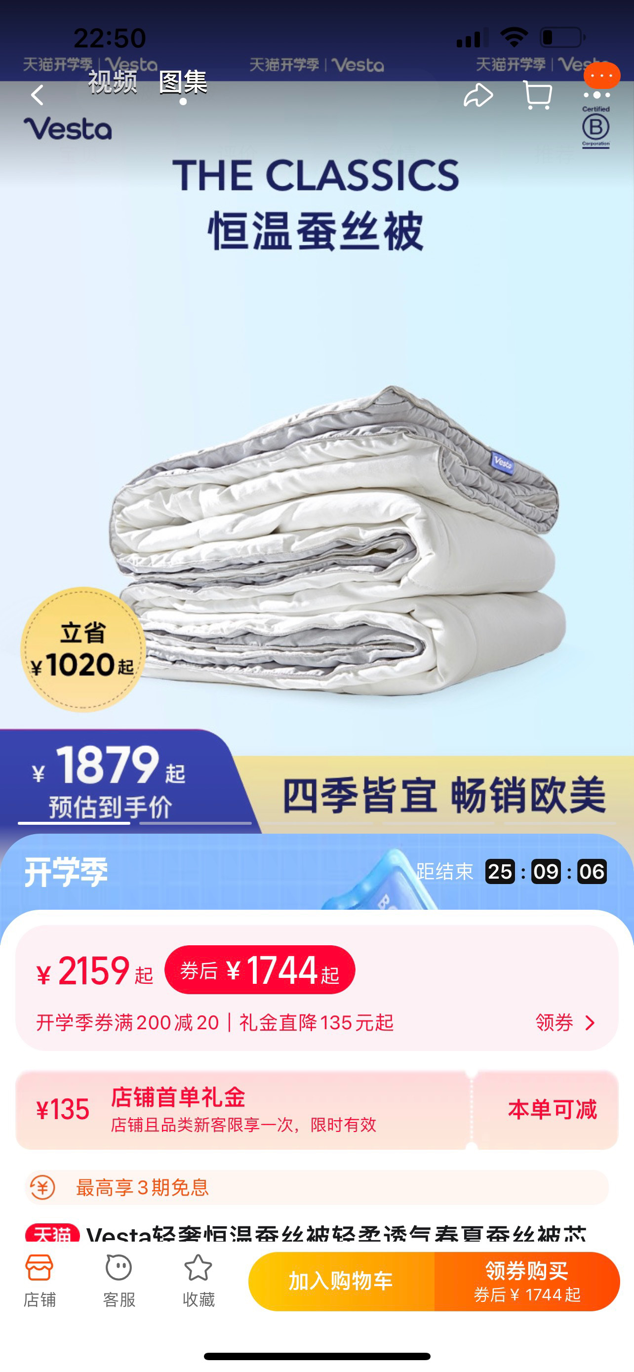 原单Vesta The Classics系列恒温蚕丝被轻柔秋冬款蚕丝被 四季可用 双面可用