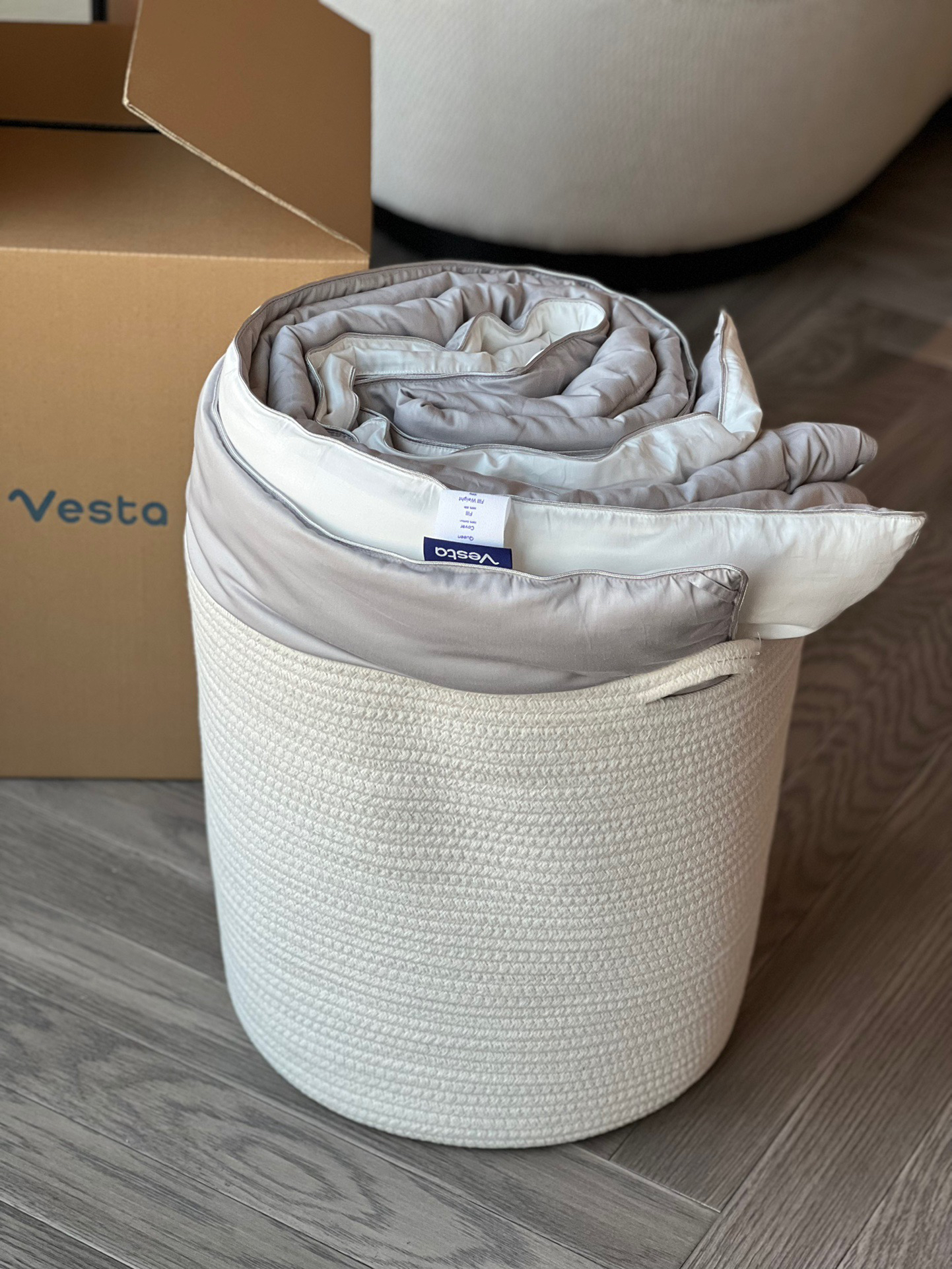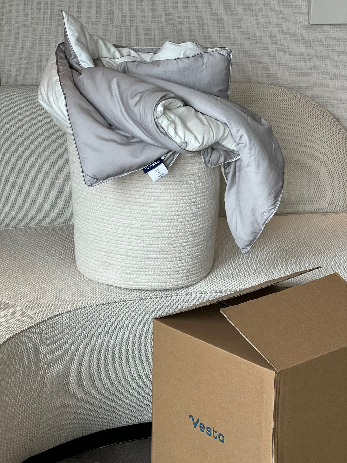 硅谷红杉资本投资的家纺品牌 材料全部取自天然 打造舒适体验 他们致力于可持续发展和环保事业 买被子赠送的不是一次性包装袋 而是可反复利用的编织收纳篮