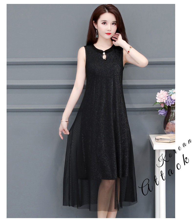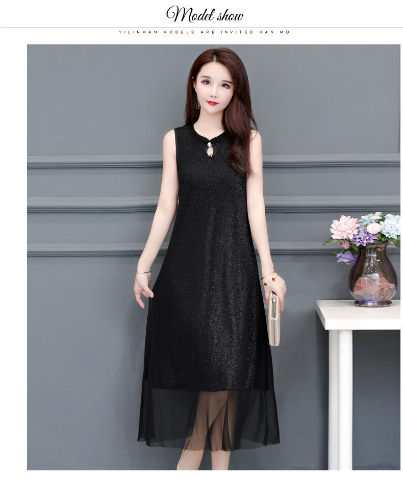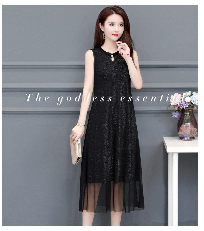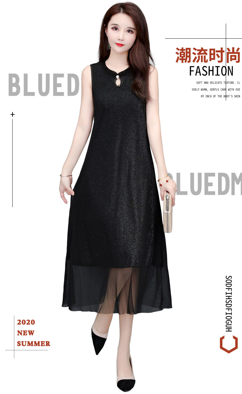 BCYD-016夏季改良百搭大码无袖背心裙修身遮肚连衣裙