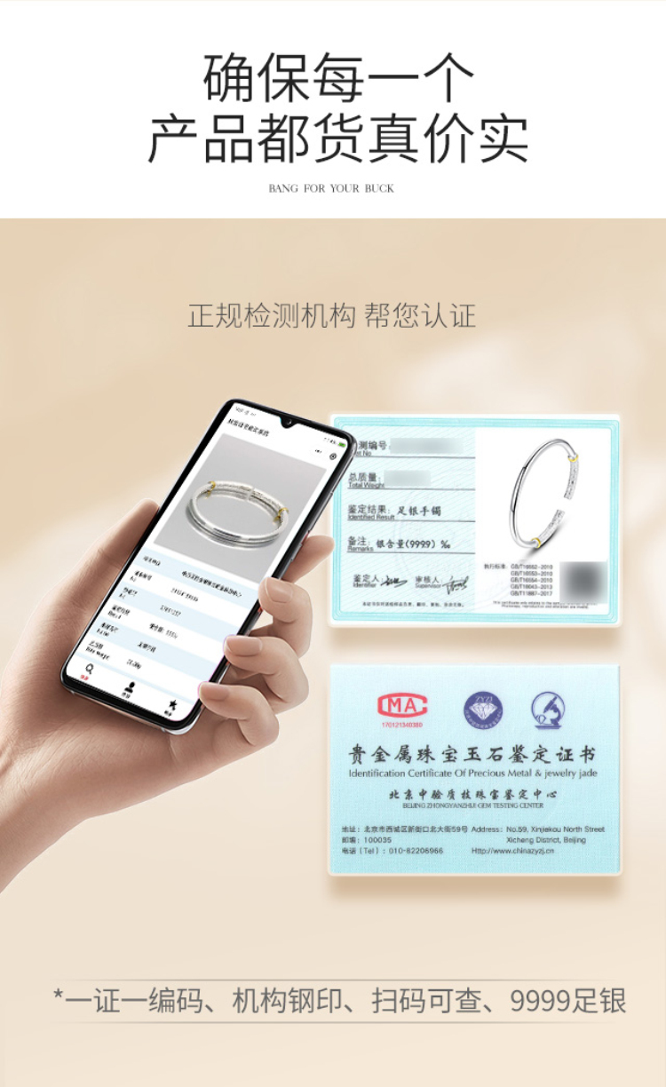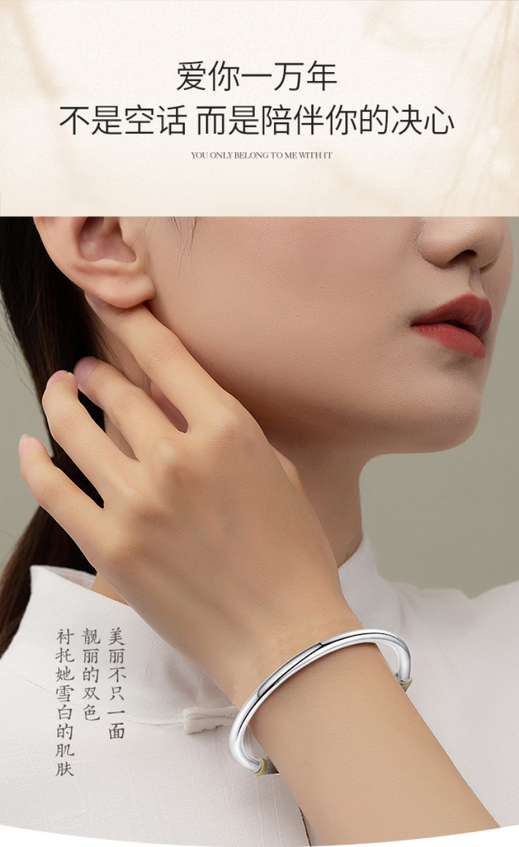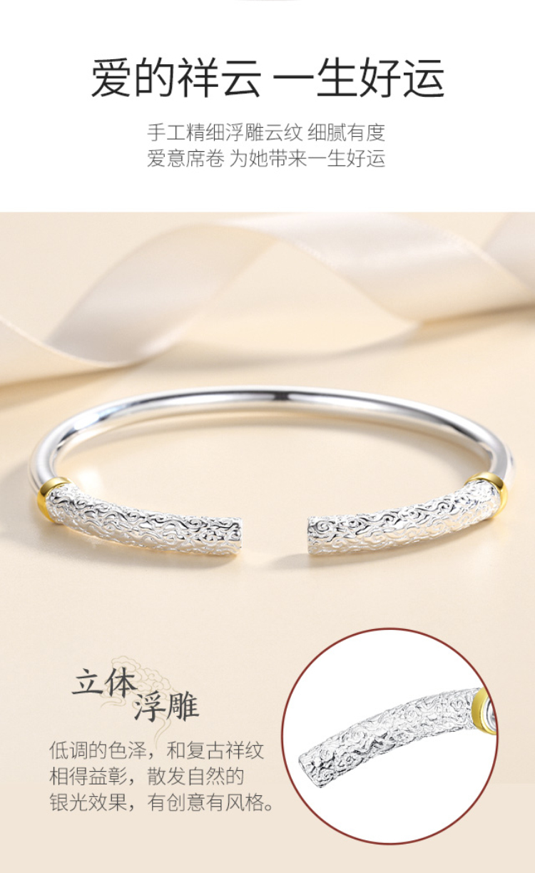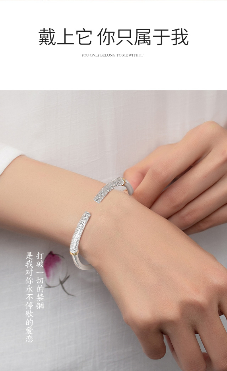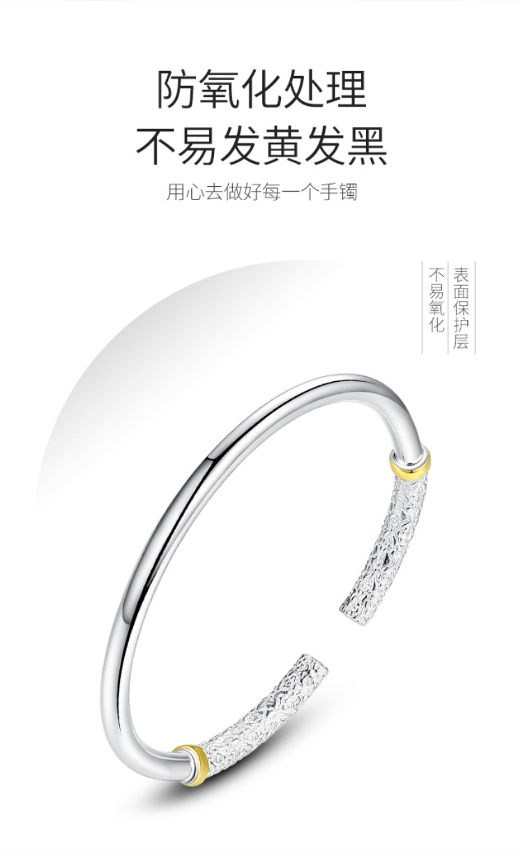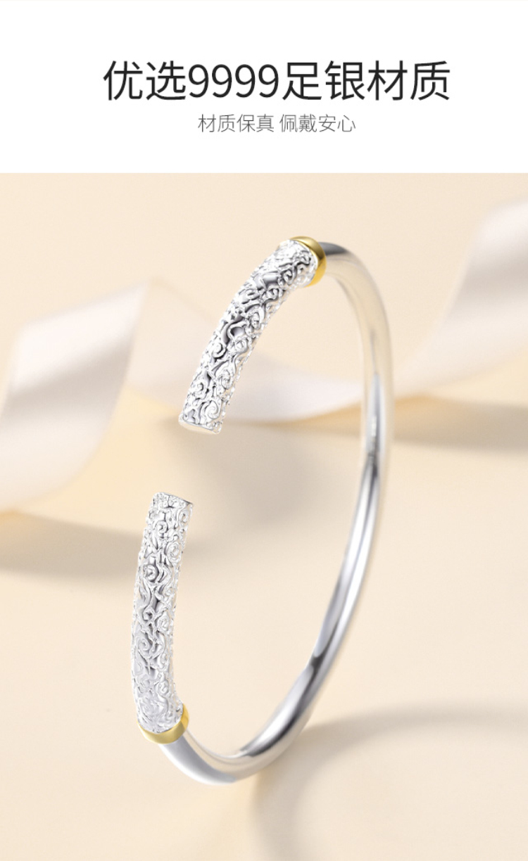 Winy9999足银一生所爱金箍棒手镯送女友闺蜜节日生日礼物