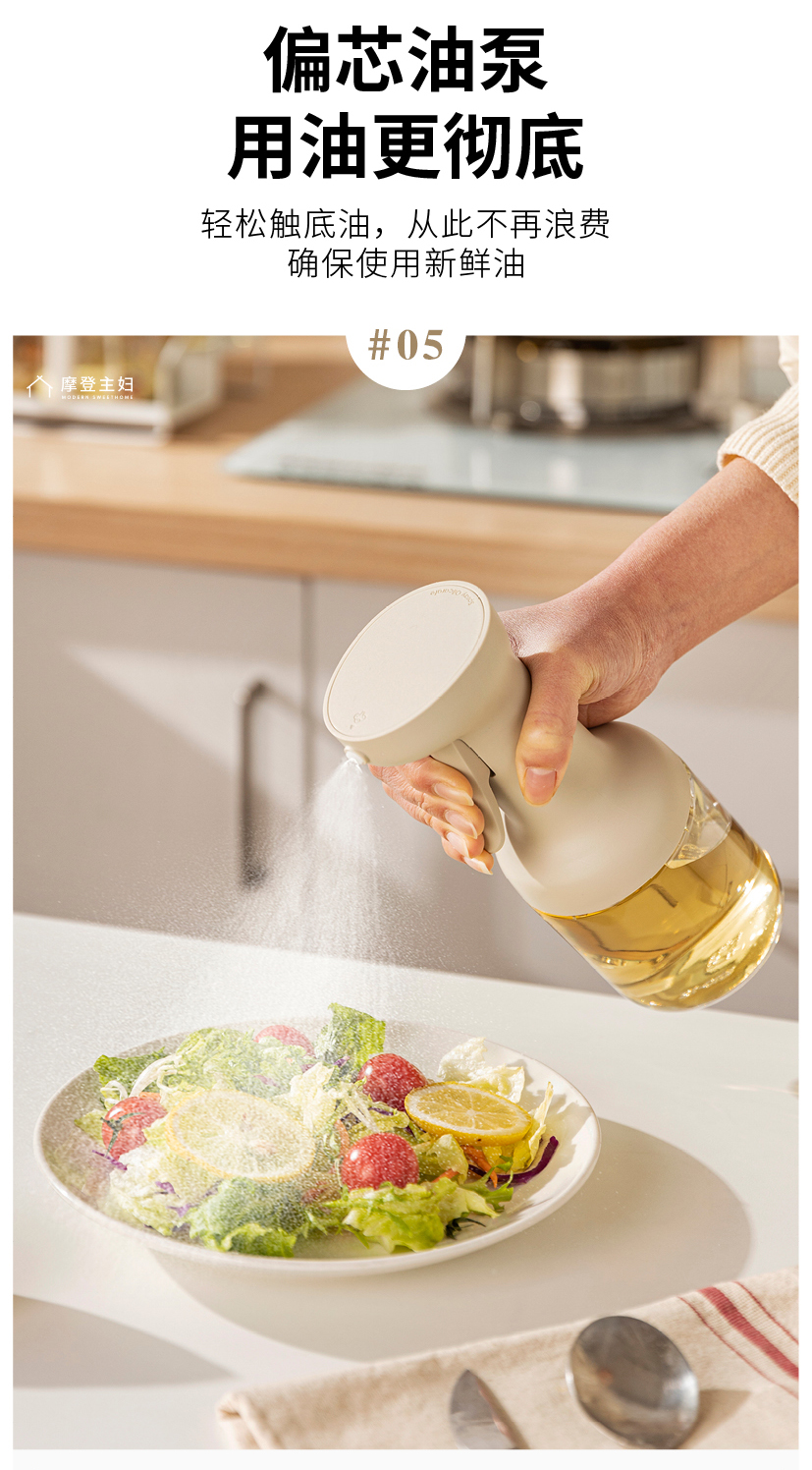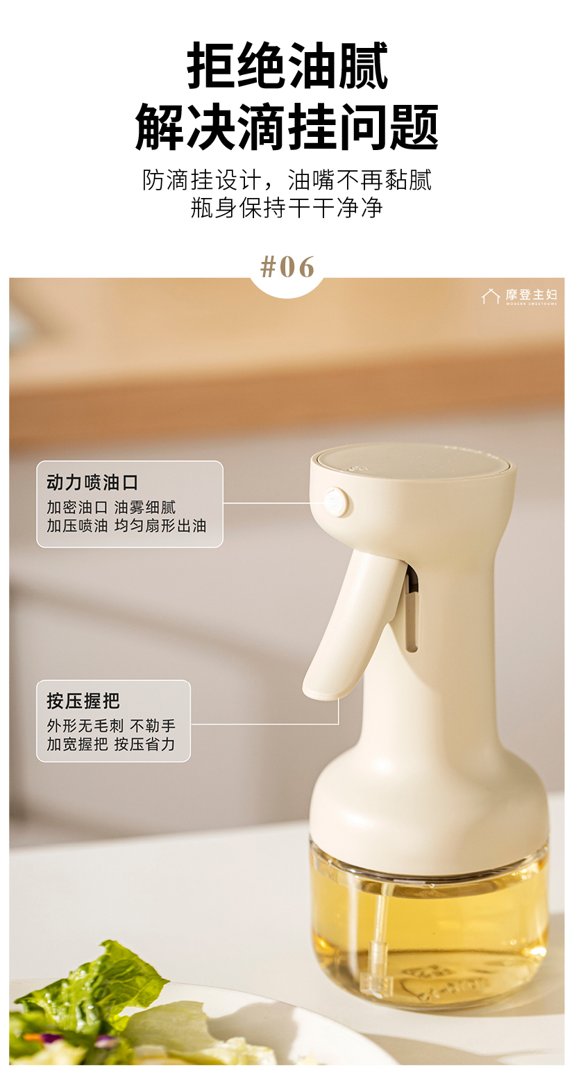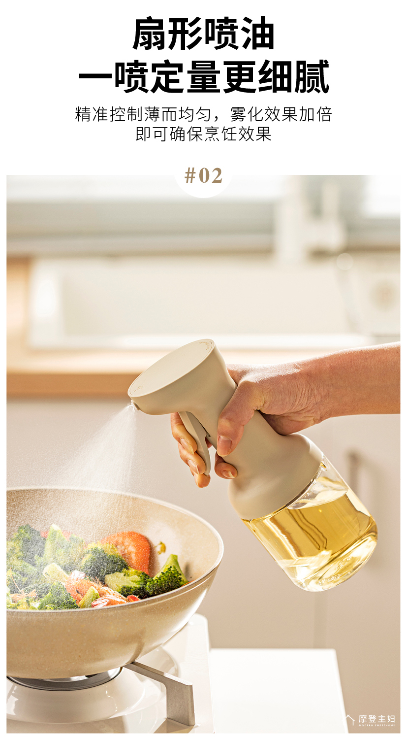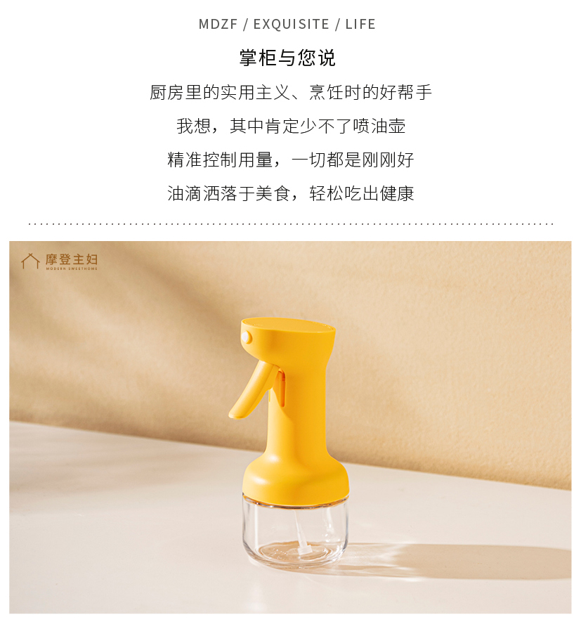 摩登主妇喷油壶玻璃不挂油家用调料瓶厨房专用雾化防漏食品级油瓶