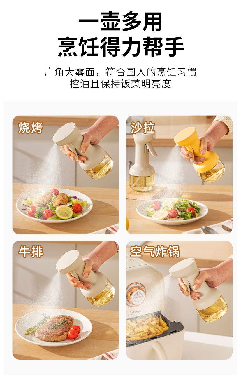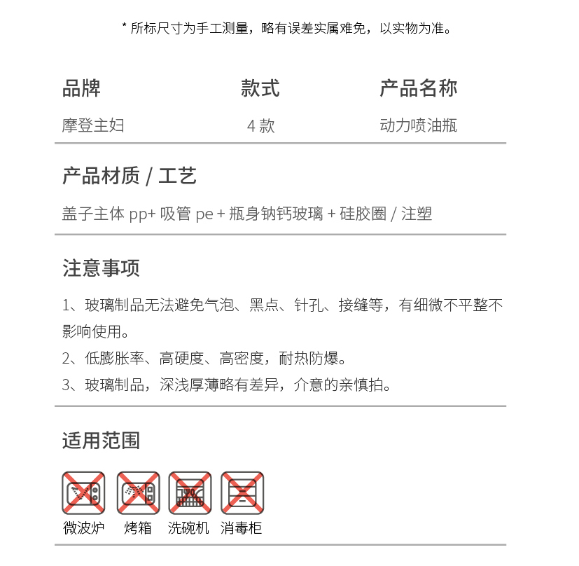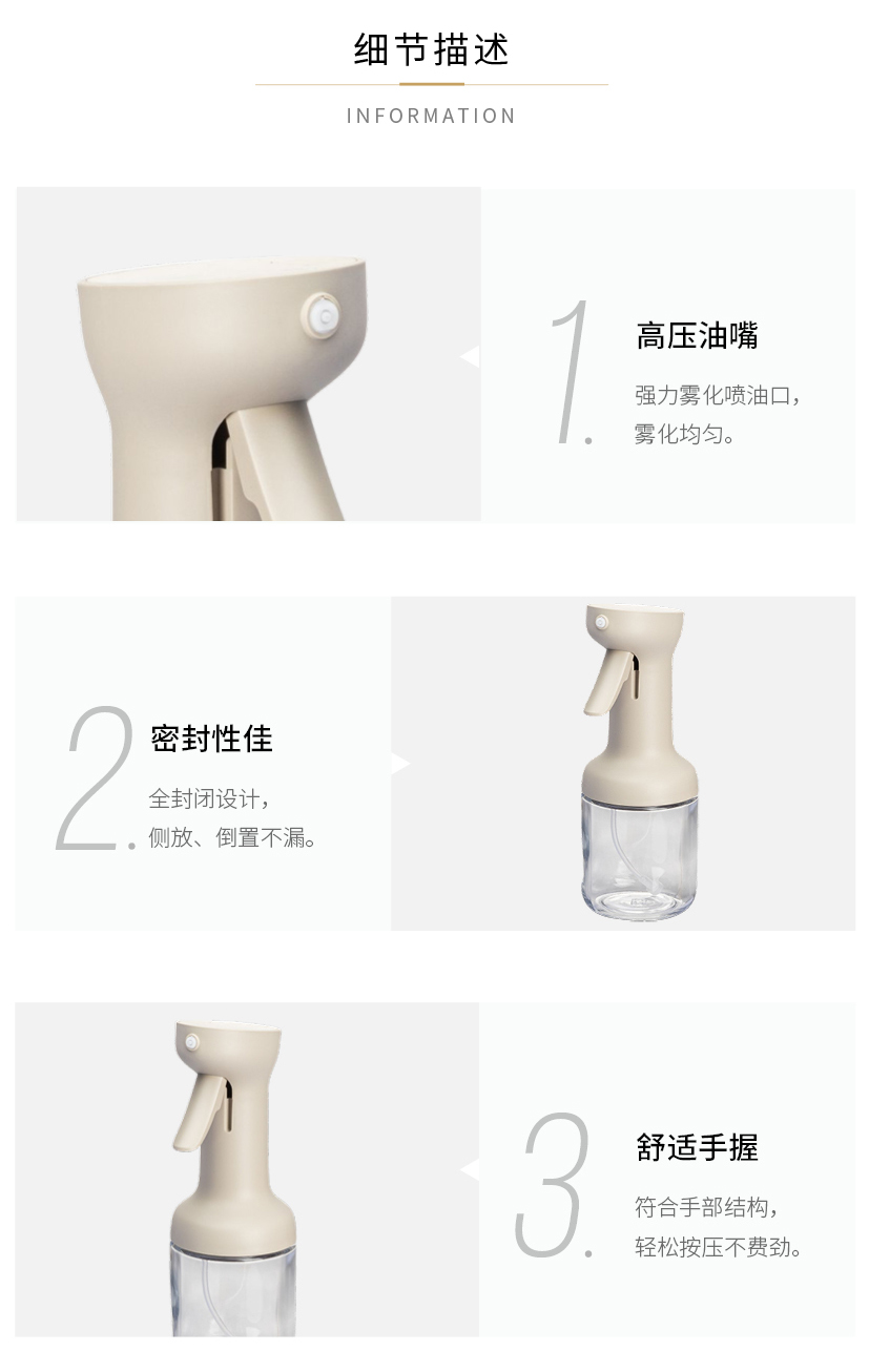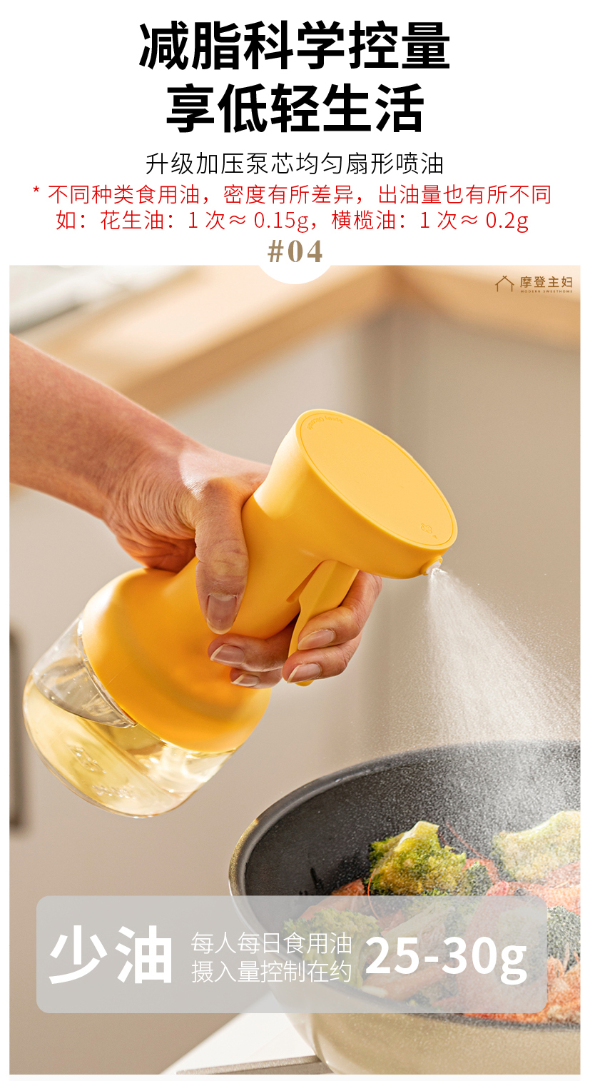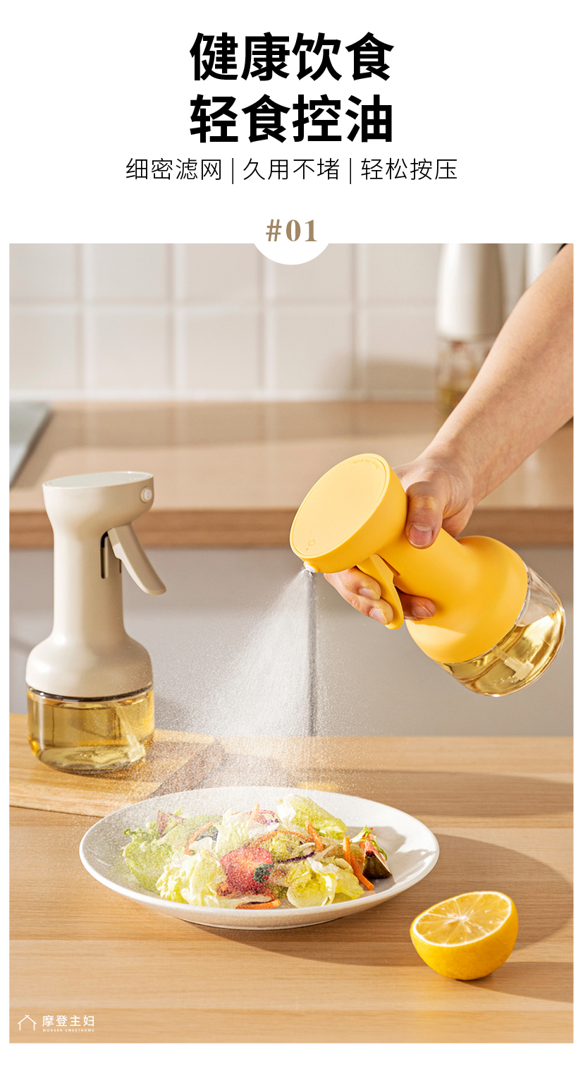 摩登主妇喷油壶玻璃不挂油家用调料瓶厨房专用雾化防漏食品级油瓶