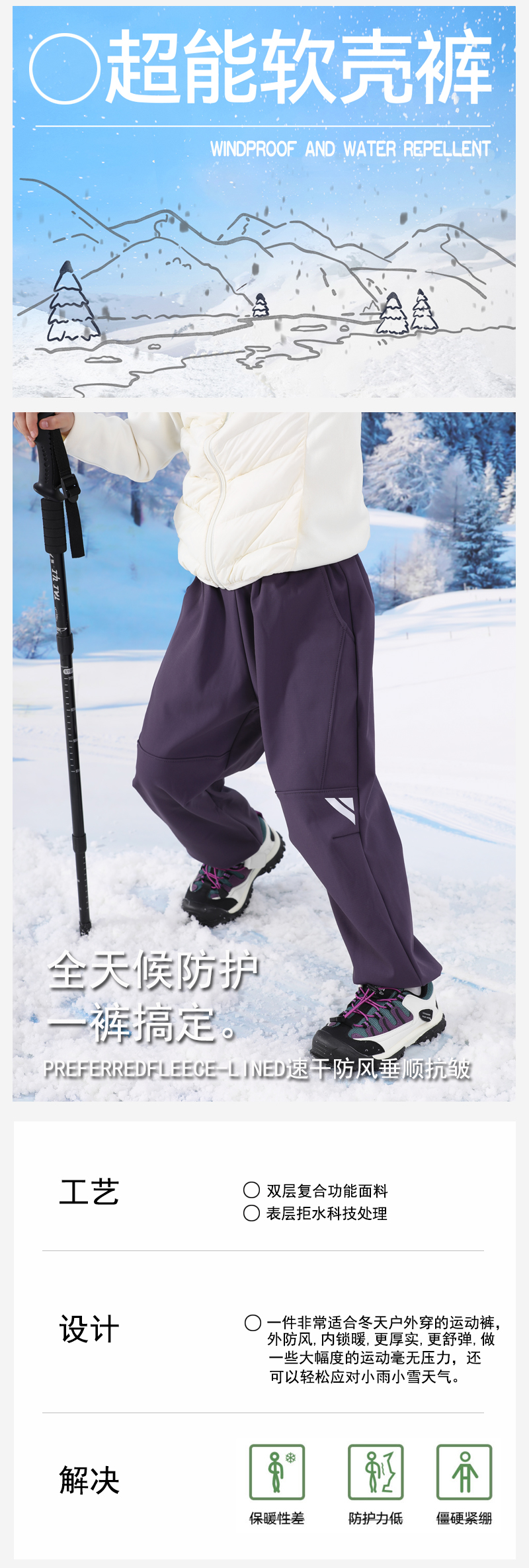 【外防风,内锁暖】儿童超能加绒软壳裤H1023 100%
