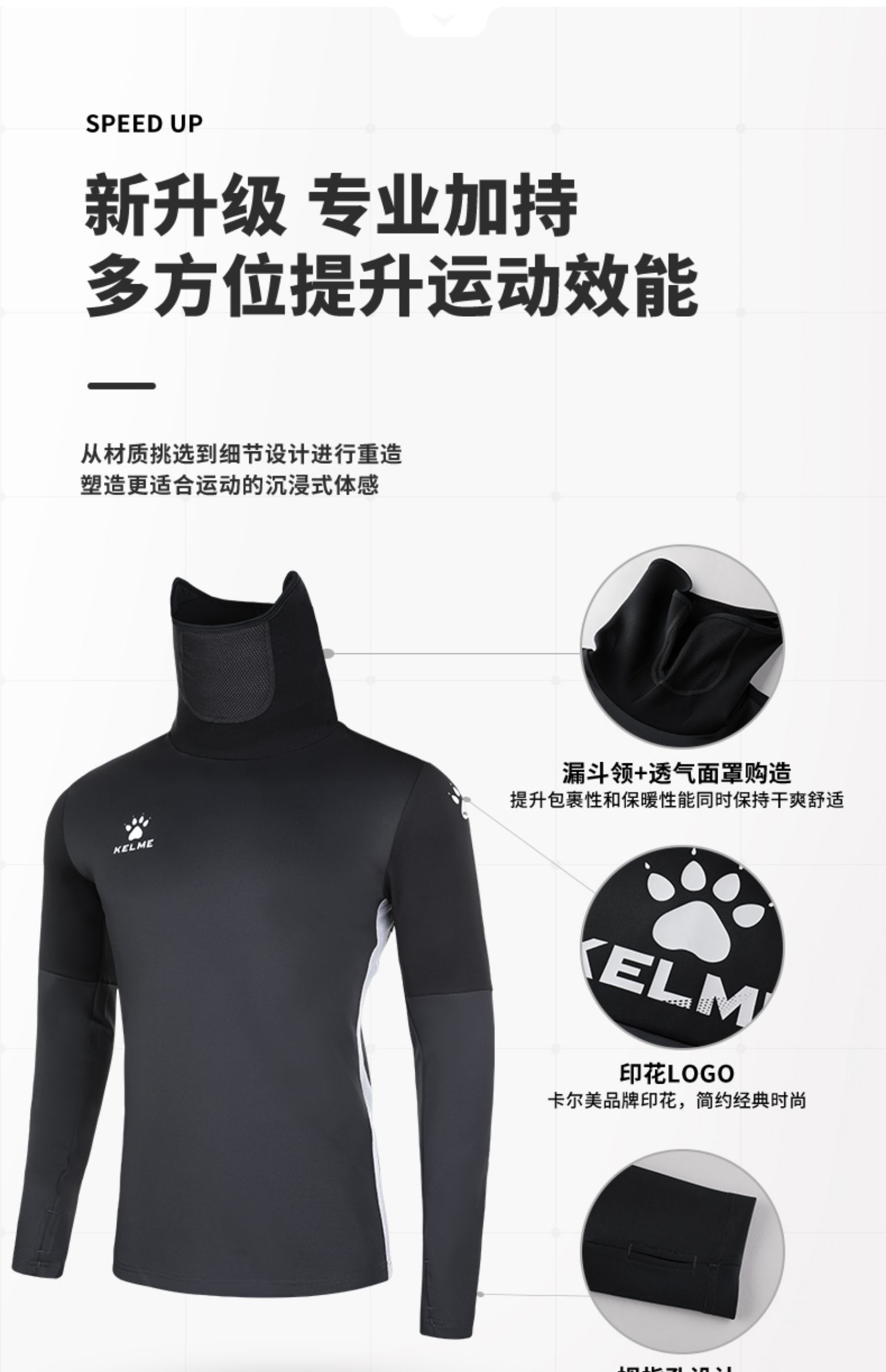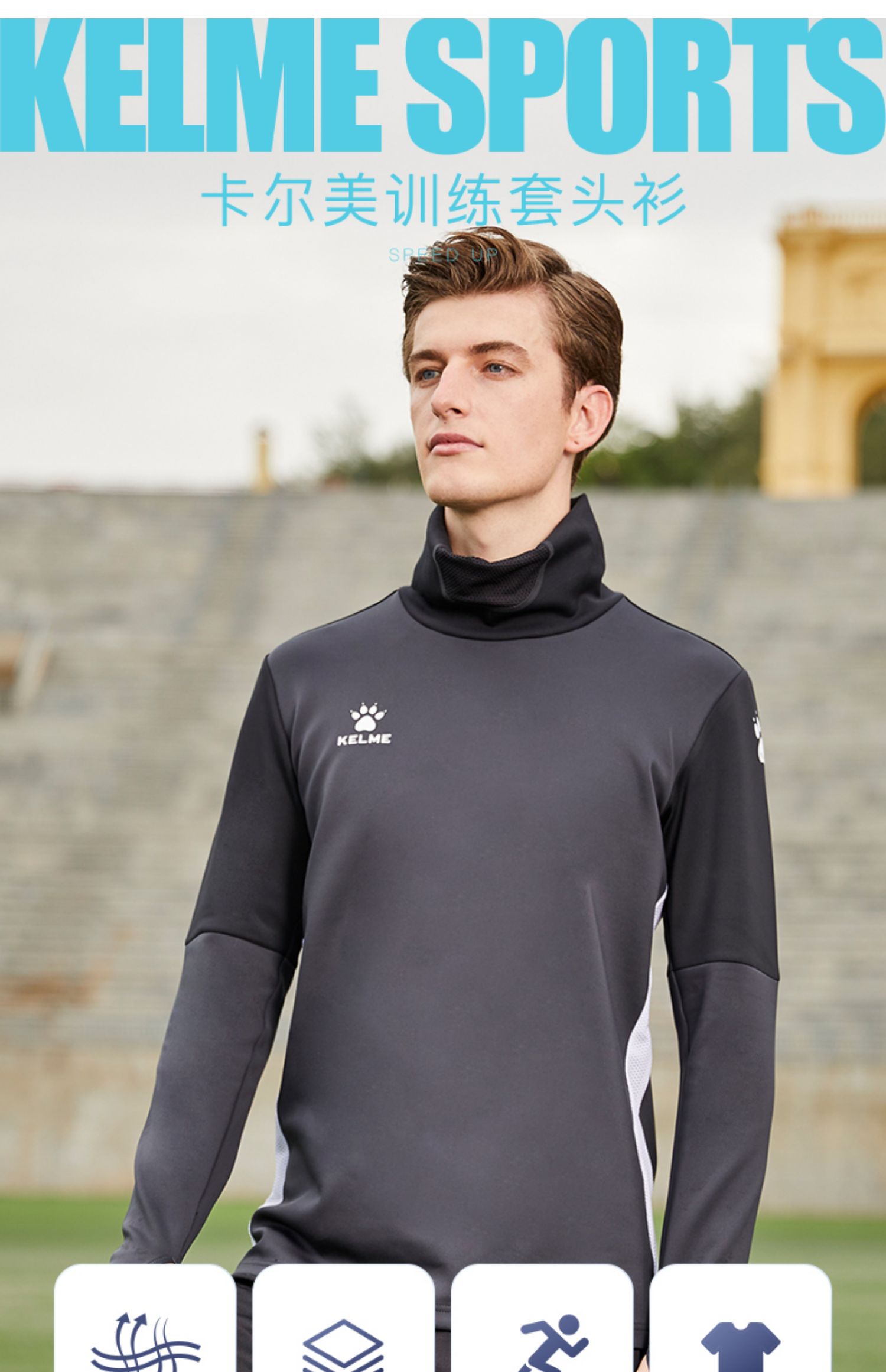 卡尔美足球跑步运动面罩卫衣秋冬新款训练套头衫上衣男女同款
