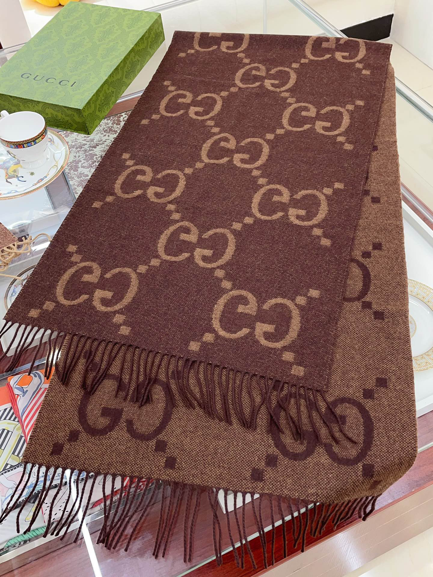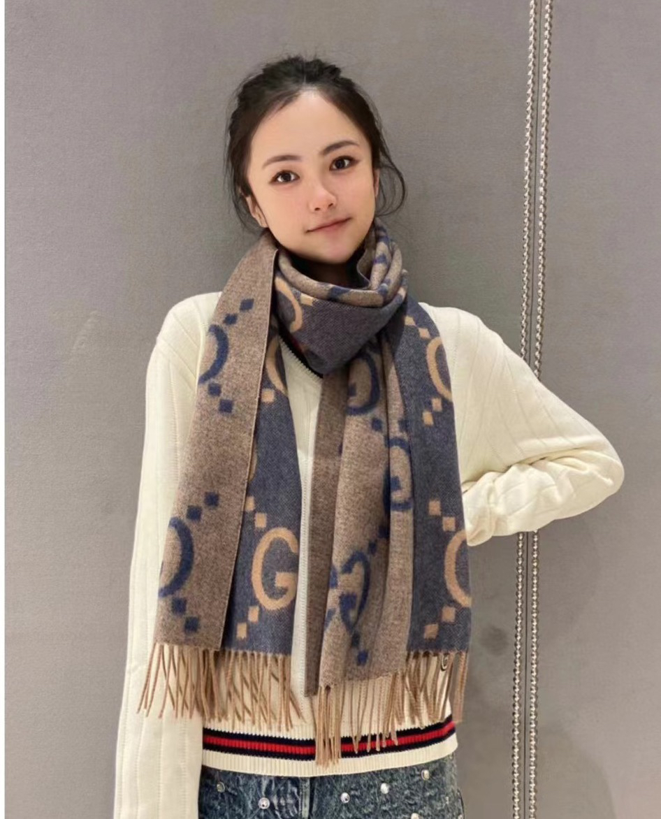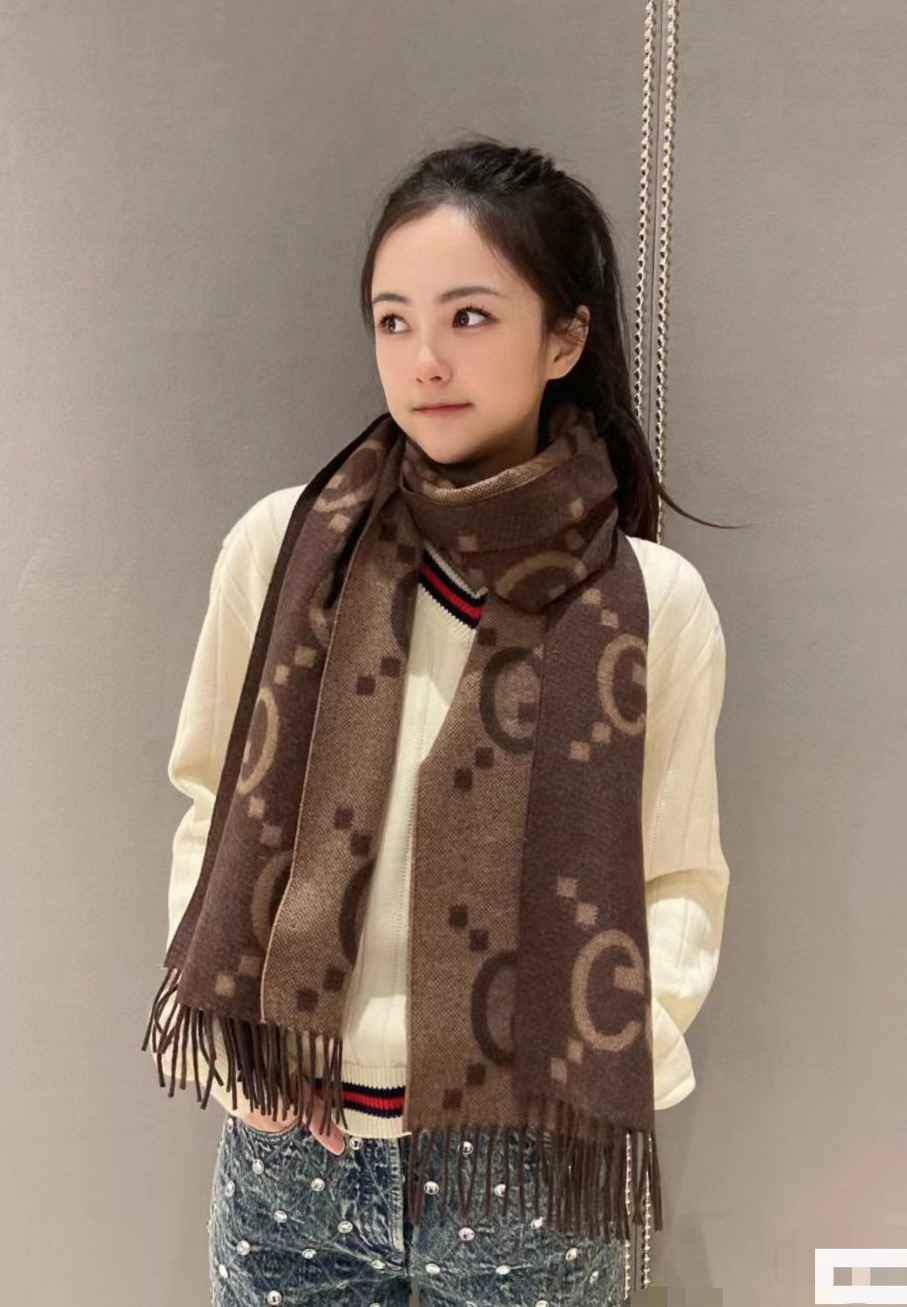 稳稳的"高段位"!!全网最高版本❗️】时髦过冬!!G家秋冬新款提花双面围巾!高端奢华,非常重工的双面老花设计,正反两面都采用GG图案,灵动而又不失俏皮。高级时髦精必入推荐,品质牛的不需要多说了,上身的感觉真的无敌高级气质~又是美出了天际啊!!自带高级气场,G独有的高级时髦,稳稳的"高段位"!羊毛手感超级厚实柔软舒服!!!真的非常令人佩服,非常有大牌的气场,张力十足,温柔时尚知性 200*45cm