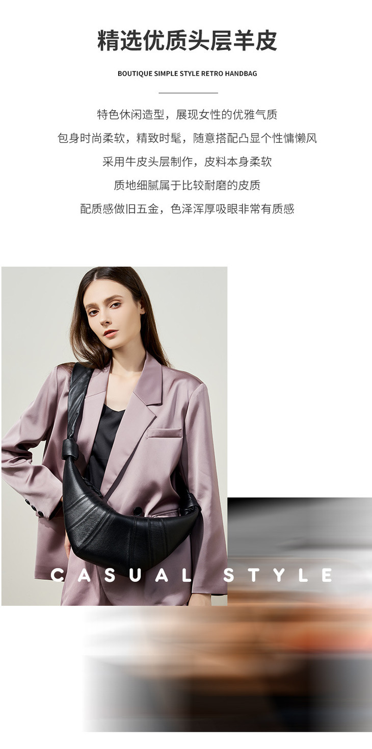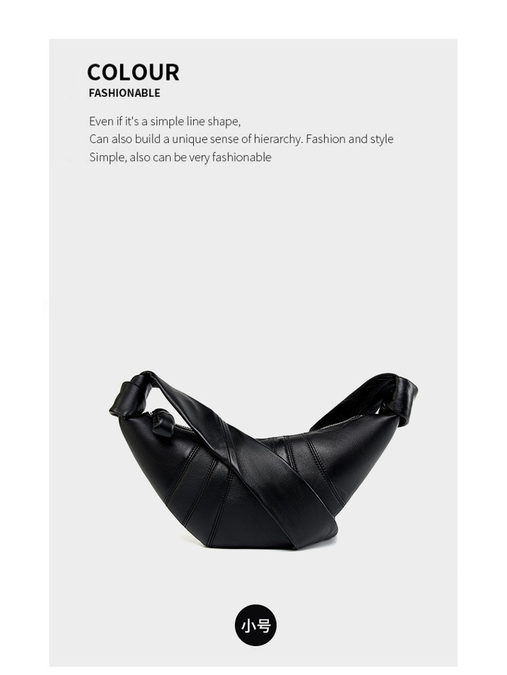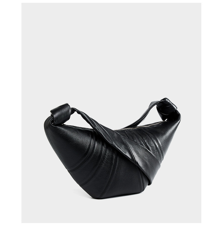 法国小众头层小羊皮可颂包斜跨,慵懒感牛角包真皮单肩斜跨饺子包QSL-2701
