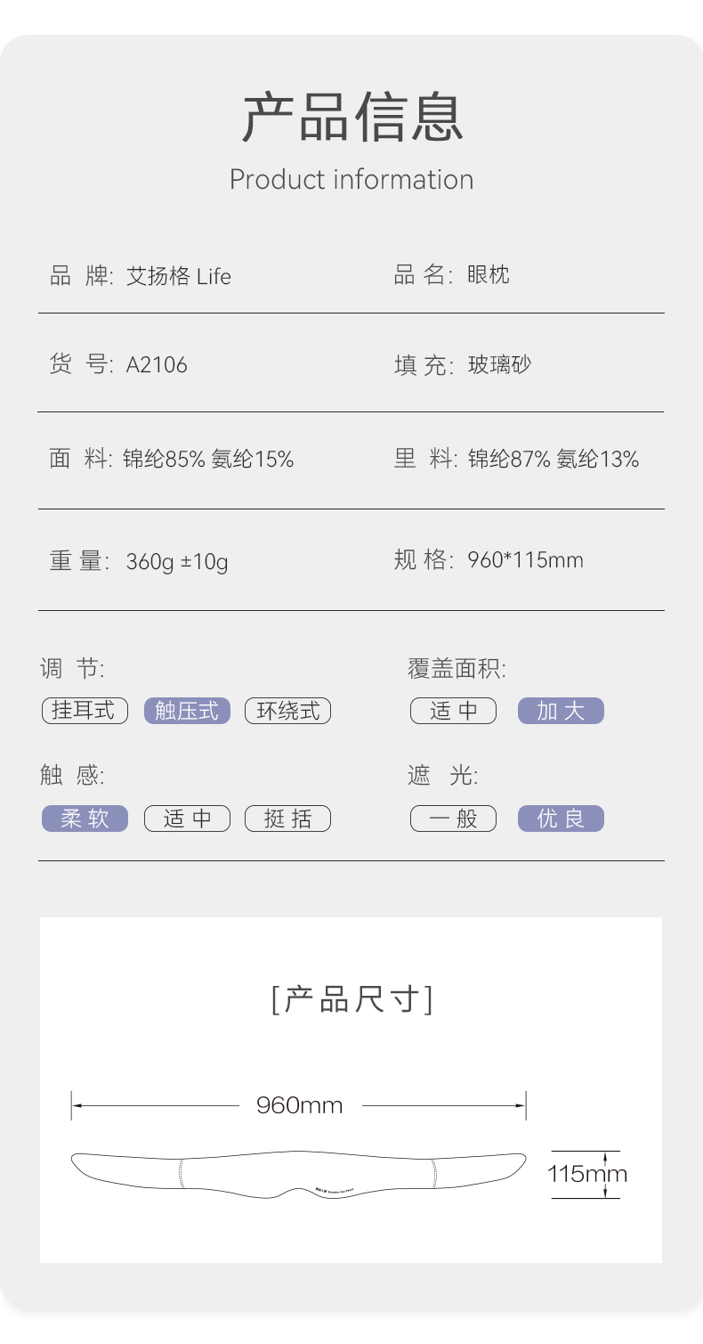 艾扬格 life A2106瑜伽微重力眼枕 颂钵调息 全遮光安神放松睡眠 助眠瑜伽 缓解眼部疲劳