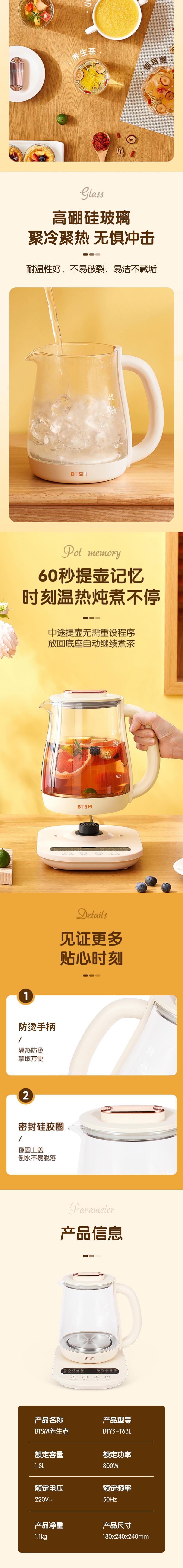 BTSM 养生壶800W/1.8L BTYS-T63L