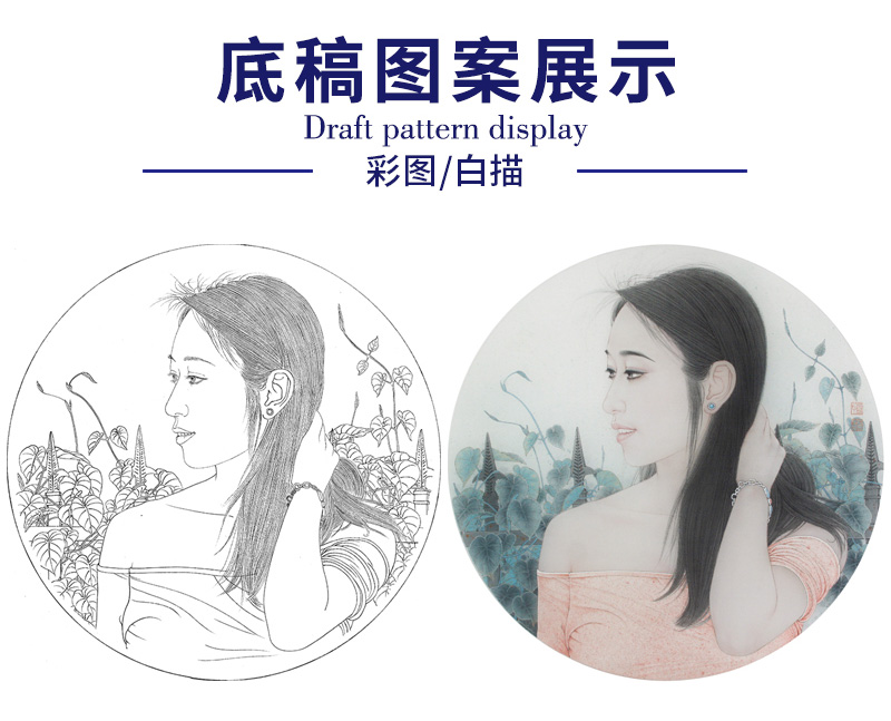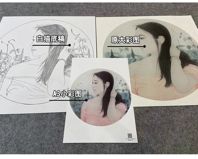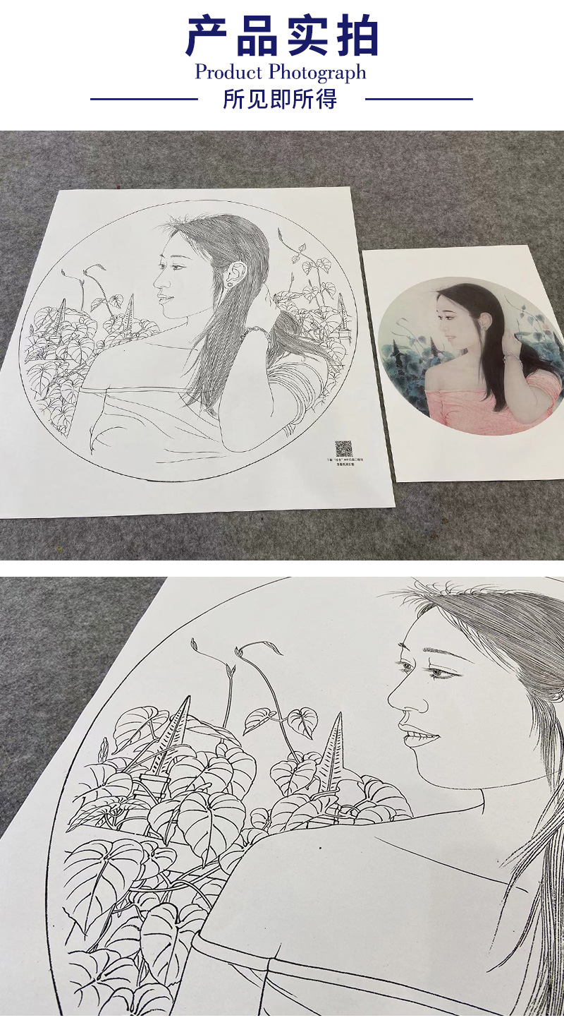 【大彩图】盘虎杰工笔画白描底稿圆形小品《阳光灿烂的季节》现代人物高清打印稿HJ31
