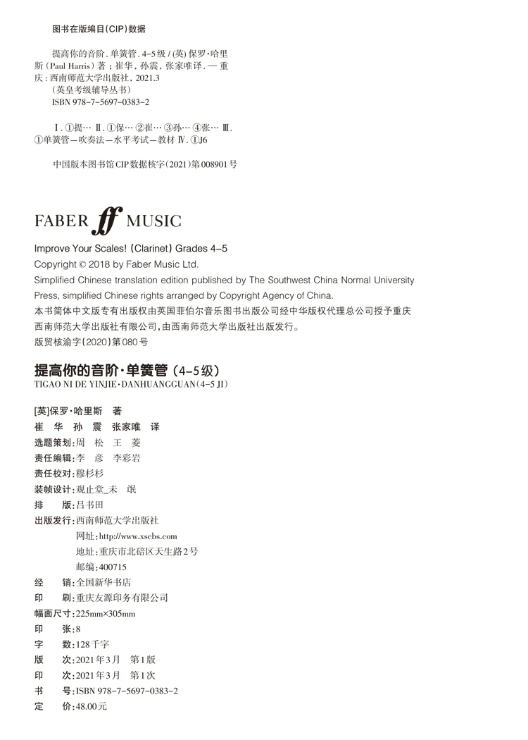 书名:提高你的音阶·单簧管(4-5级) | ISBN:978-7-5697-0383-2 |