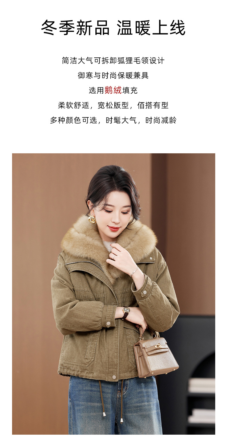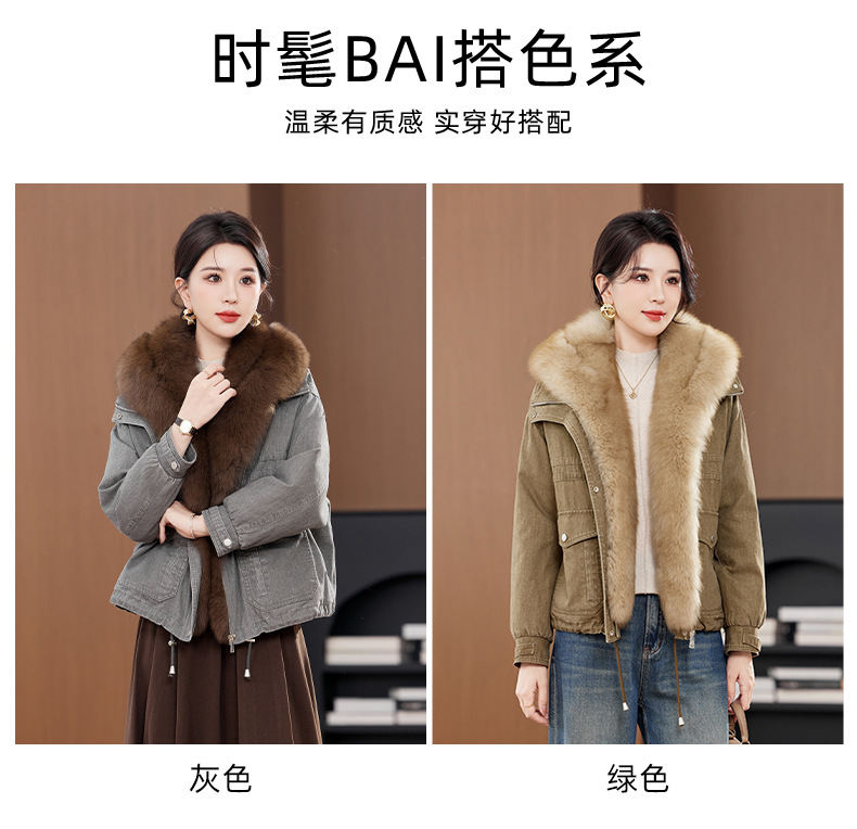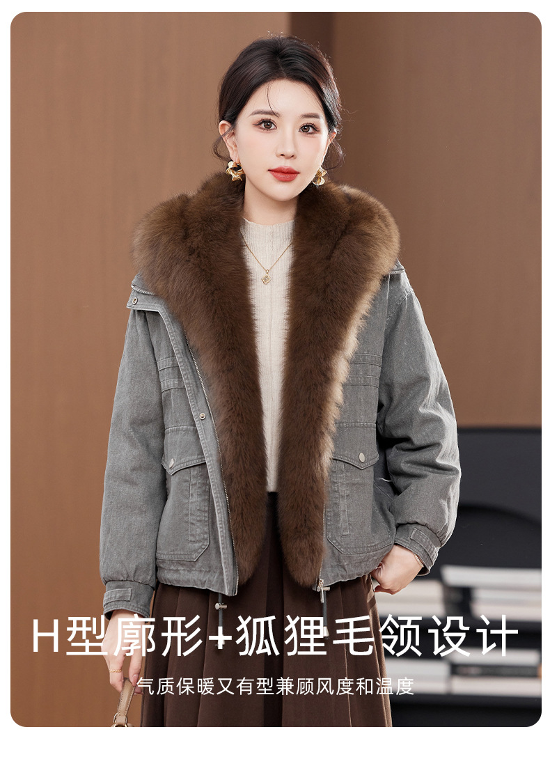 TC 9393狐狸毛领皮草短款大衣派克羽绒服鹅绒