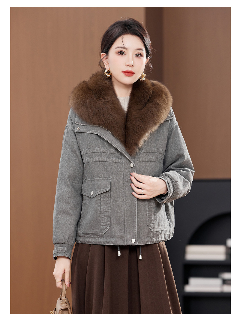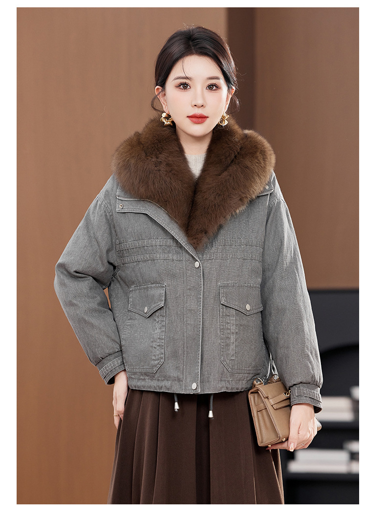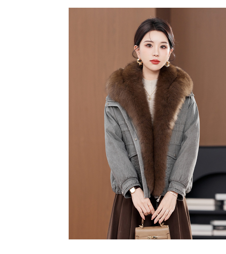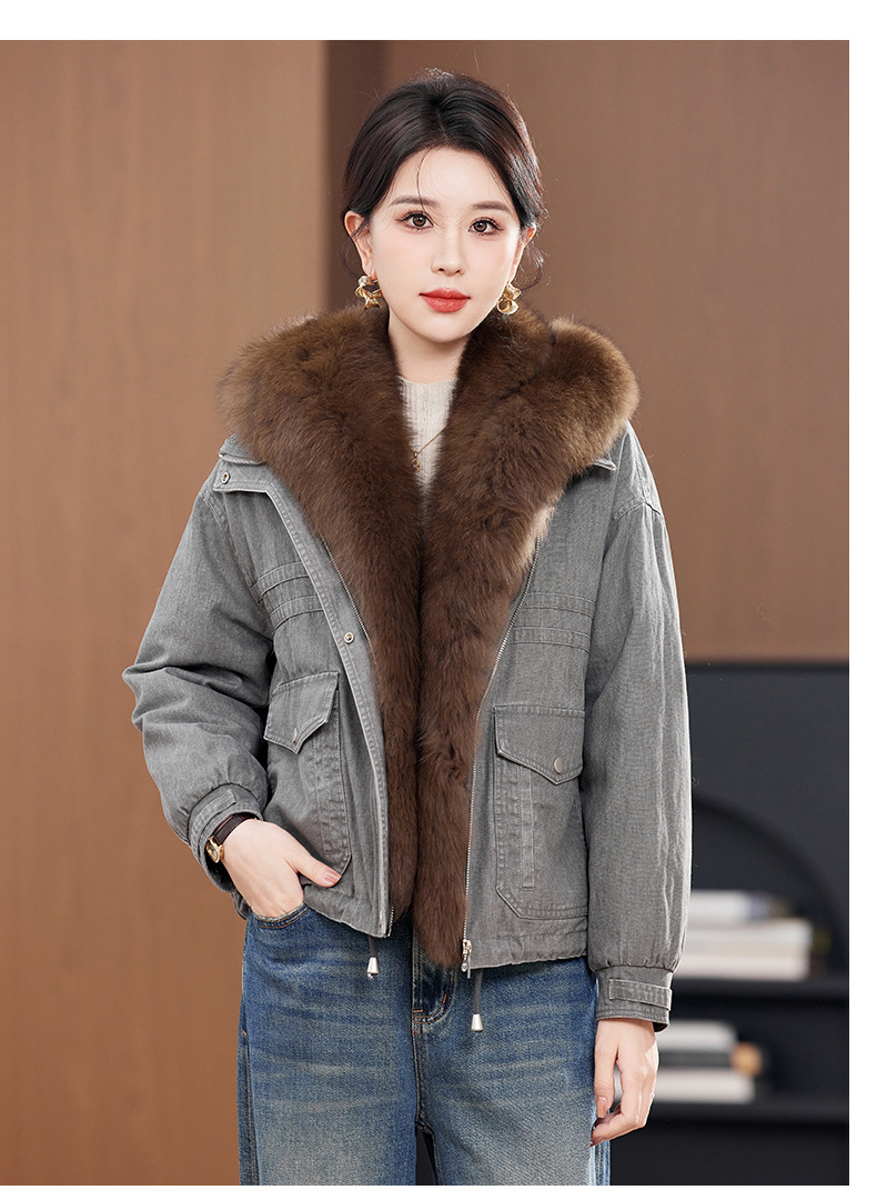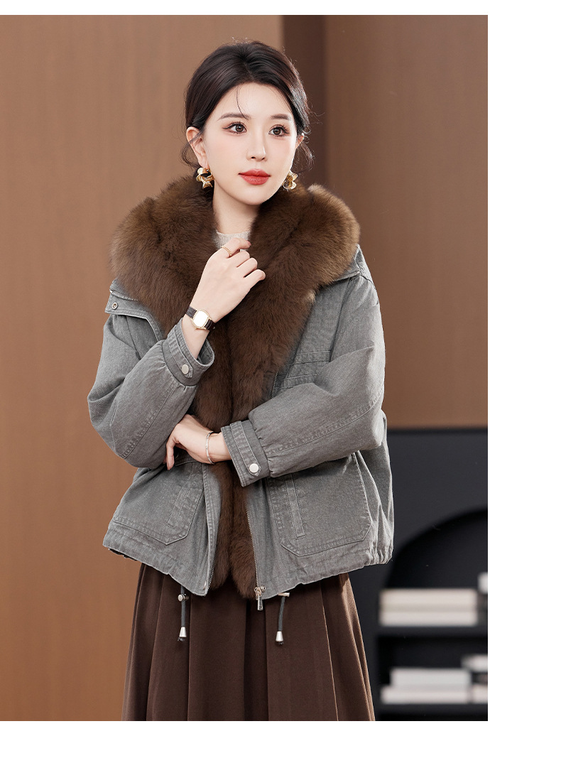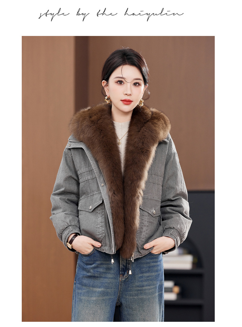TC 9393狐狸毛领皮草短款大衣派克羽绒服鹅绒 商品图4