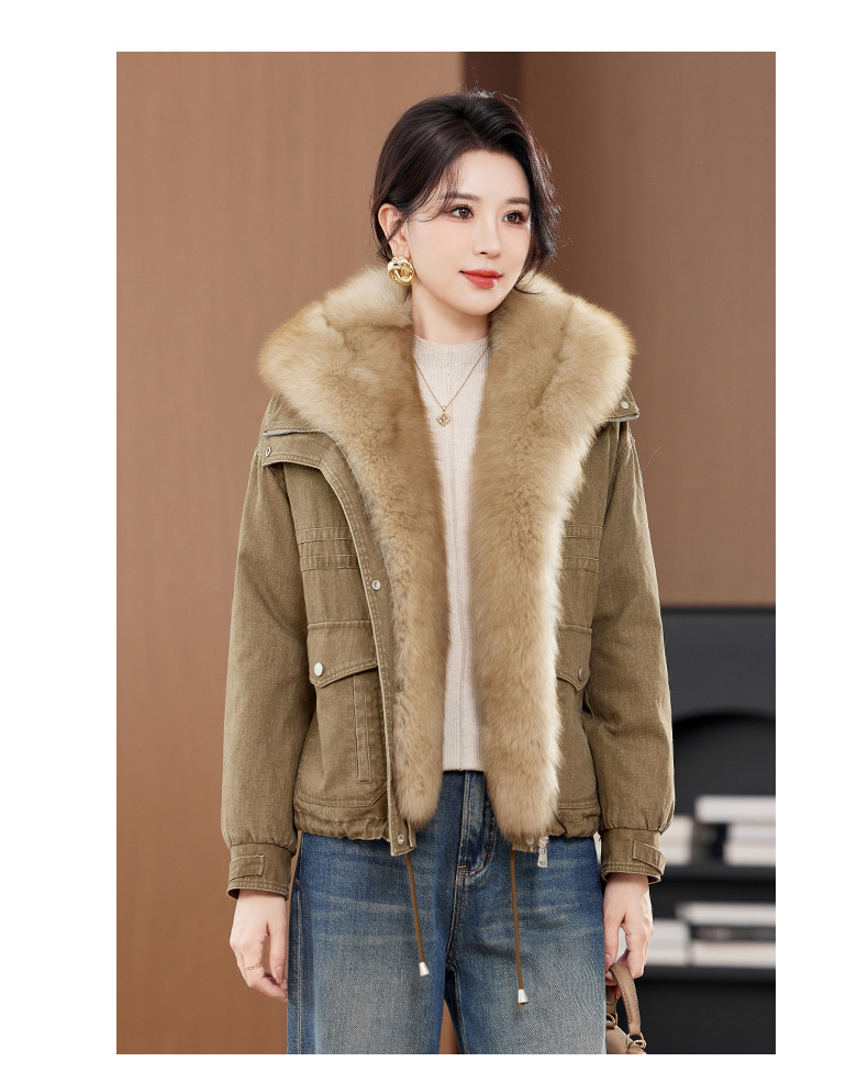 TC 9393狐狸毛领皮草短款大衣派克羽绒服鹅绒 商品图0