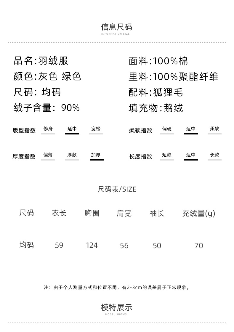 TC 9393狐狸毛领皮草短款大衣派克羽绒服鹅绒 商品图3