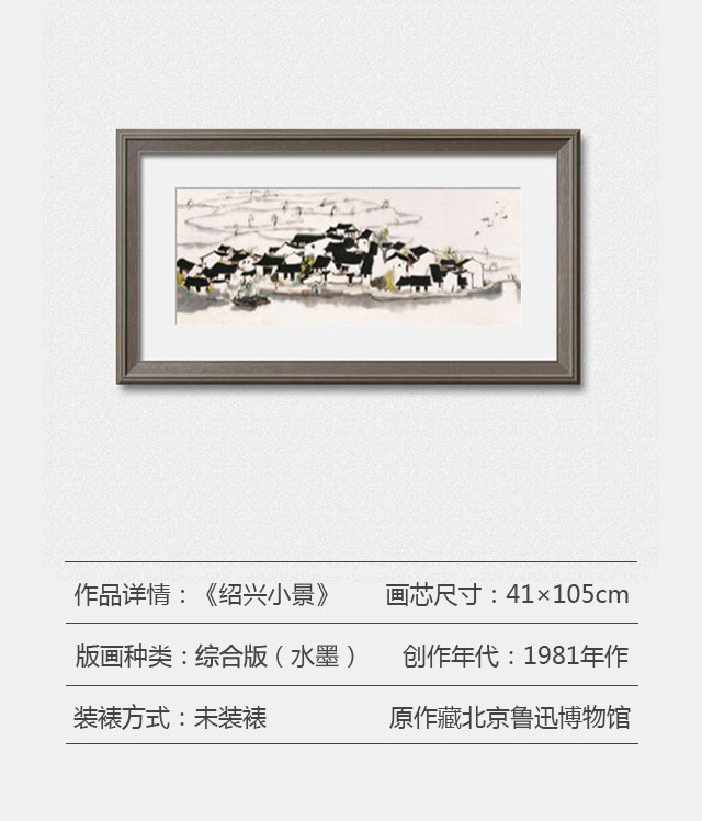 吴冠中先生用精湛的绘画技艺,将绍兴古镇的悠悠古韵融入现代情思。既表达了东方传统意趣,又具有时代特征,令观者耳目一新。