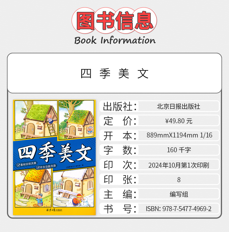 四季美文 素材日积月累作文日新月异春夏秋冬小学生一二三四五六年级作文素材词语积累彩图版每日晨读