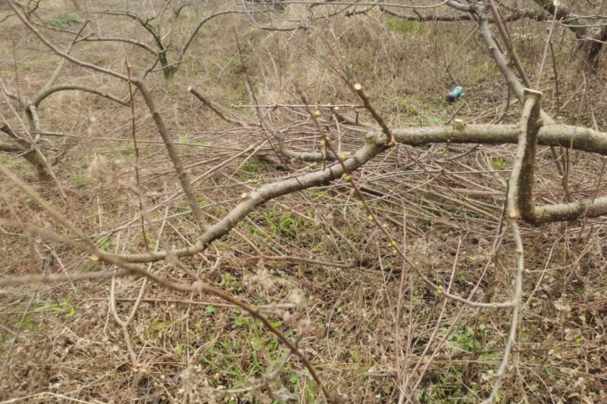 3月份剪枝,一边剪枝,一边把枝条都烧掉,一方面草亦灰可以做肥料,另一方面,也可以减少病菌。星哥说,第一年管理果树,不熟悉,剪枝花了大量的时间。