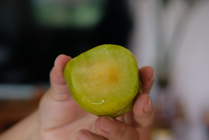 星哥一直在密切关注果子的成熟,成熟度过高,肉质会变成海绵状,水分不足,口感变差,所以时刻了解成熟度,掌握采摘时机就很重要了。而采收期天天大太阳,黄金奈李的甜度终于上来了,水分也很充足,吃起来脆爽酸甜,正是最好吃的时候。