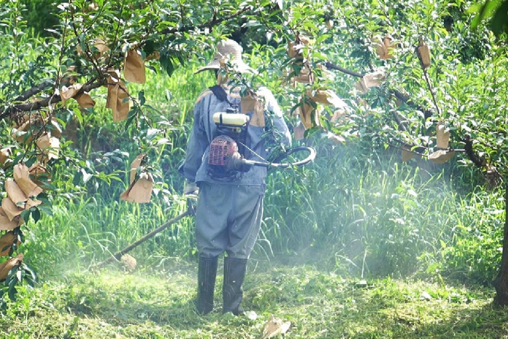 4月份,用锄头铲享,这片小果园从去年6月份开始没有打理,所以长出了许多恶性杂草,这次就需要用锄头来除掉。除完草之后放了草木灰。