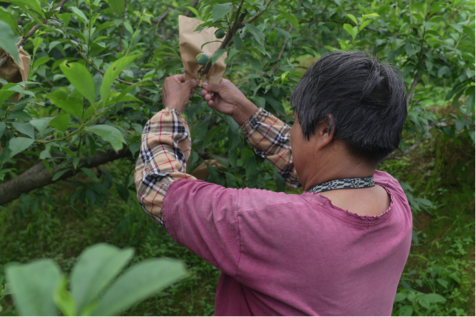今年,四五月份的时候,果子特别多,套袋都花了很多精力。