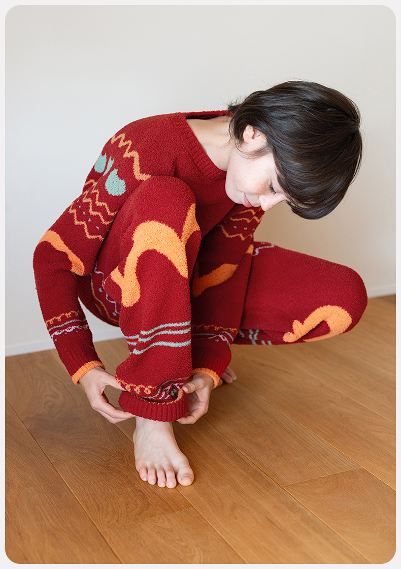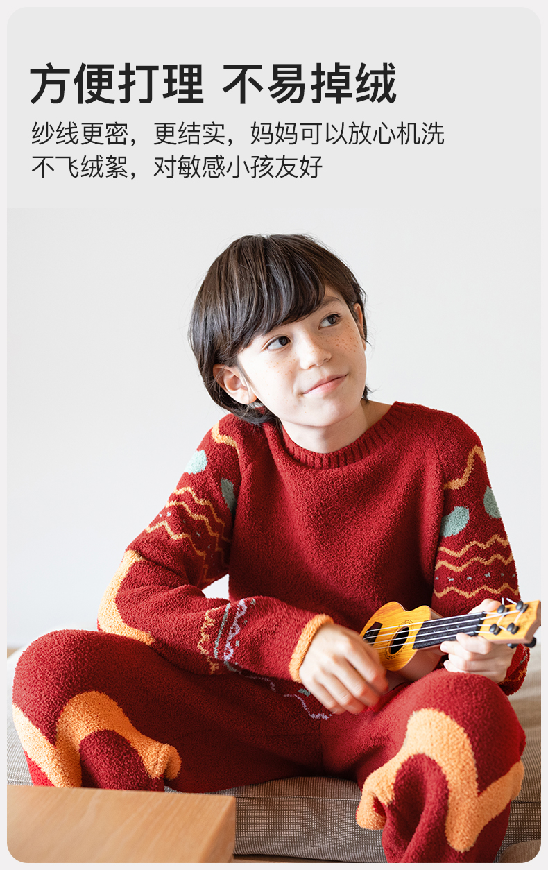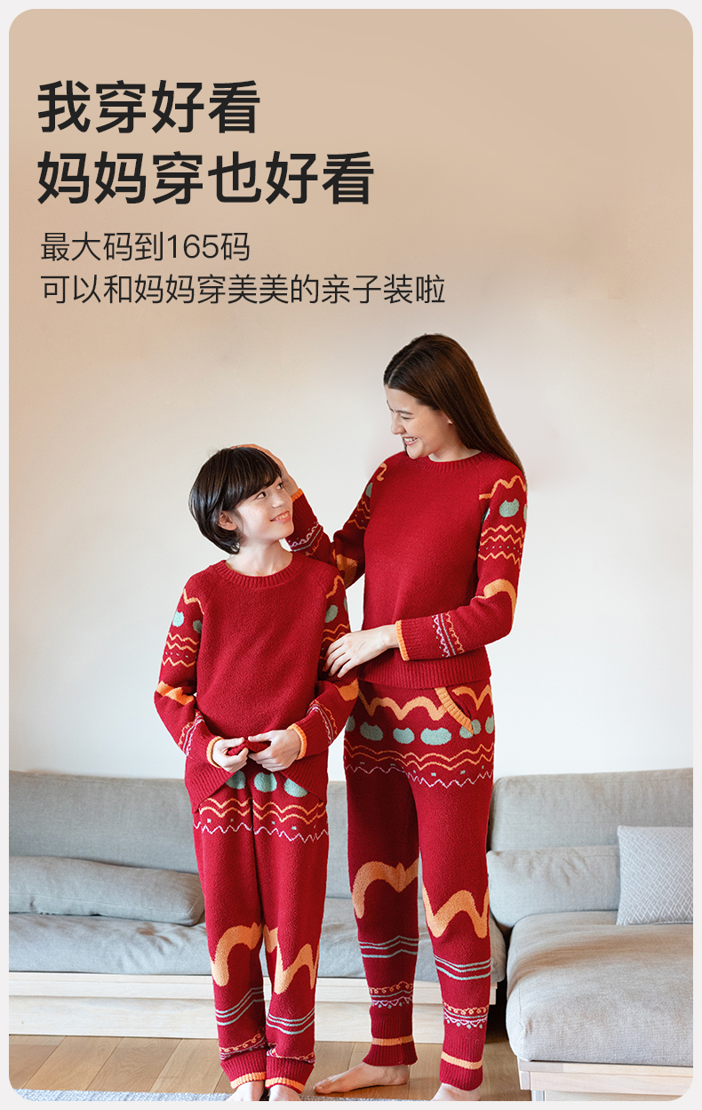 likeuu家居服龙年抱抱系列半边绒秋冬款红色睡衣套装