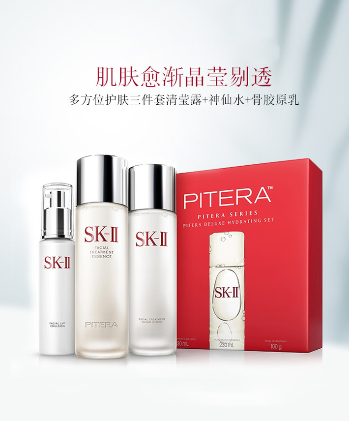 【保税仓】SK-II多方位PITERA保湿精华修护套组(神仙水230ml+清莹露230ml+骨胶原乳液100g)(加赠雪花秀面膜35ml*1)